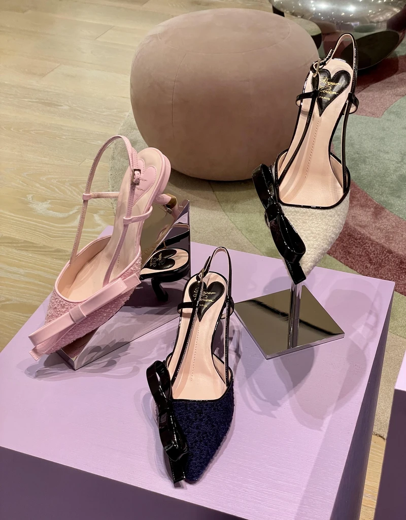 2023年適逢「Virgule逗號鞋跟」的60歲大壽,Roger Vivier先生於1963年創造出了形似逗號的內彎鞋跟,革命性的創新之作,為20世紀的鞋履設計締造里程碑。現任創意總監Gherado Felloni經常以全新手法來詮釋逗號鞋跟的經典,今年秋冬更著重於色彩與光澤,新增了搶眼豹紋與冰粉色的款式,上方的漆皮蝴蝶結,則是向Roger Vivier先生嘗試製作帽子時期的標誌性蝴蝶結元素致敬。