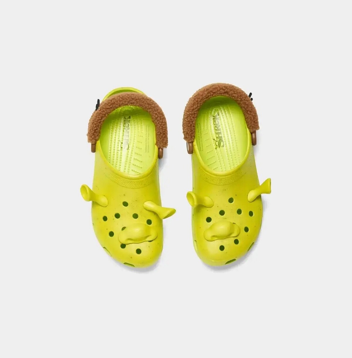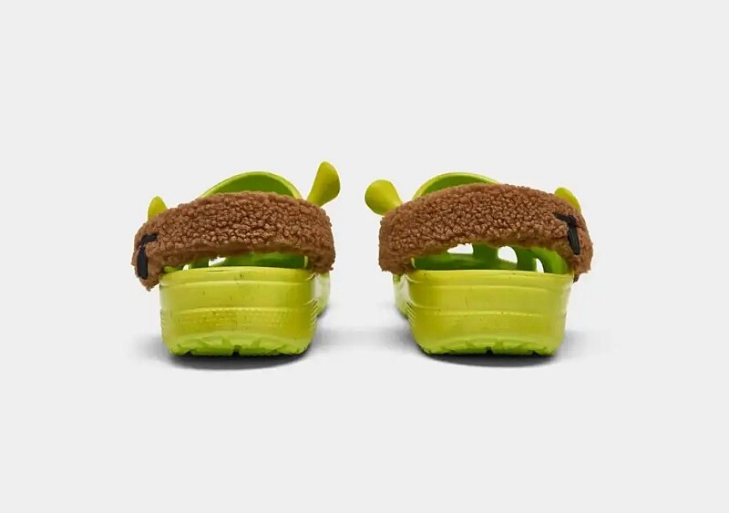 從CROCS搶先曝光的聯名單品照來看,鞋型是選用經典的Classic Clog鞋款,鞋身是標誌性的「史瑞克綠」,而史瑞克的五官部分,則是以品牌受人喜愛的裝飾鞋扣神還原史瑞克的尖耳朵與大鼻子。