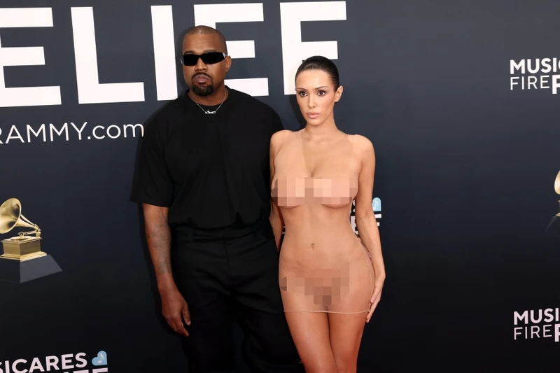 Kanye West(現改名為Ye),在與Kim Kardashian離婚後,2023年初與建築師女友Bianca Censori結婚,婚後Bianca造型一次比一次大尺度與前衛,幾乎讓身邊的Kanye都相形失色,在2024年底傳出乎婚變消息的兩人在2025年葛萊美頒獎典禮上合體,Bianca看似正常的造型隨著外搭的毛絨大衣脫下後震驚全場,幾近全裸的超薄透洋裝也讓他們直接被請出會場!
