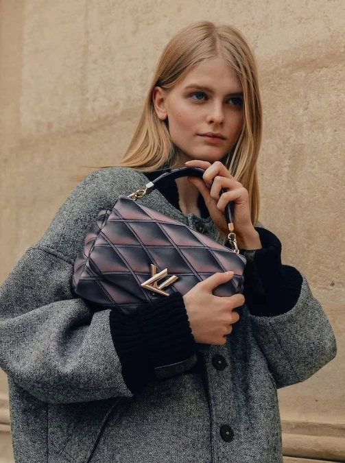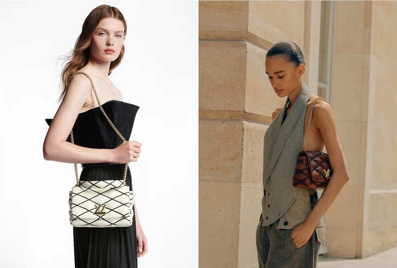 GO-14搭配嶄新設計的五金可變化多種搭配背法,金屬鍊條可收短肩背,也可以放長Crossbody,手袋上方的手提把則採用全新C字扣件,讓提把變成可拆式的靈活配件,最後加上標誌性的LV Twist轉鎖,為手袋提升高級氣息。
