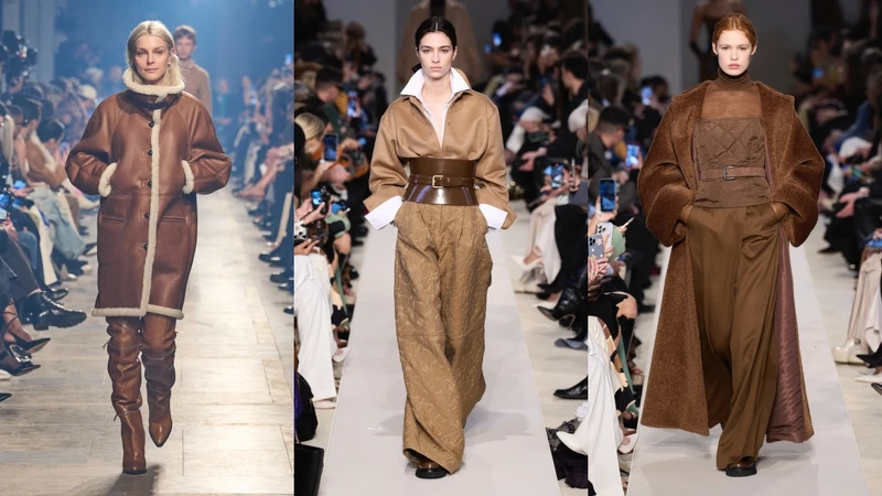 在2023秋冬時裝週上,就可以看到包括Miu Miu、Max Mara、Hermès、Coach等品牌都大量的運用卡其、駝色以及深淺不一的褐色或焦糖色打造系列,除了同色系的疊加之外,在大面積的咖啡色系中加入亮綠、淺黃、紅、橘亮色系在其中,為今年秋冬的美拉德風格定調。