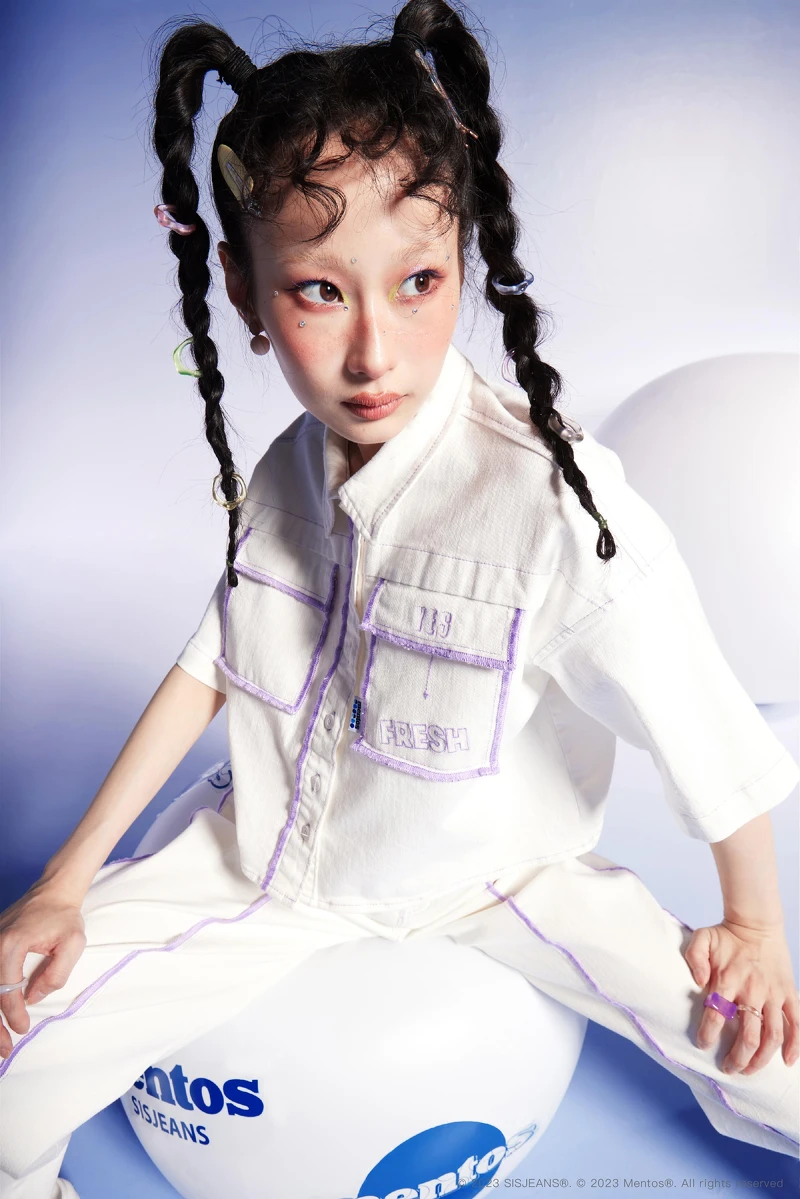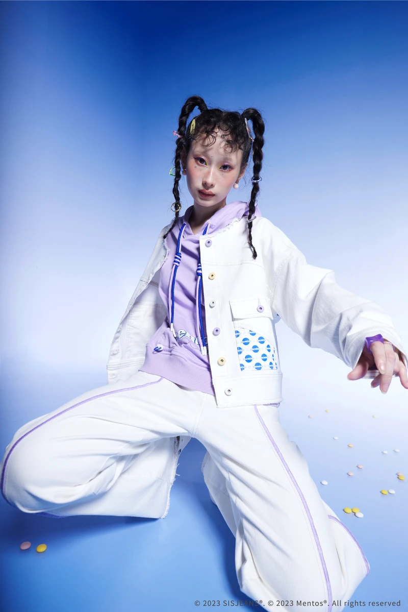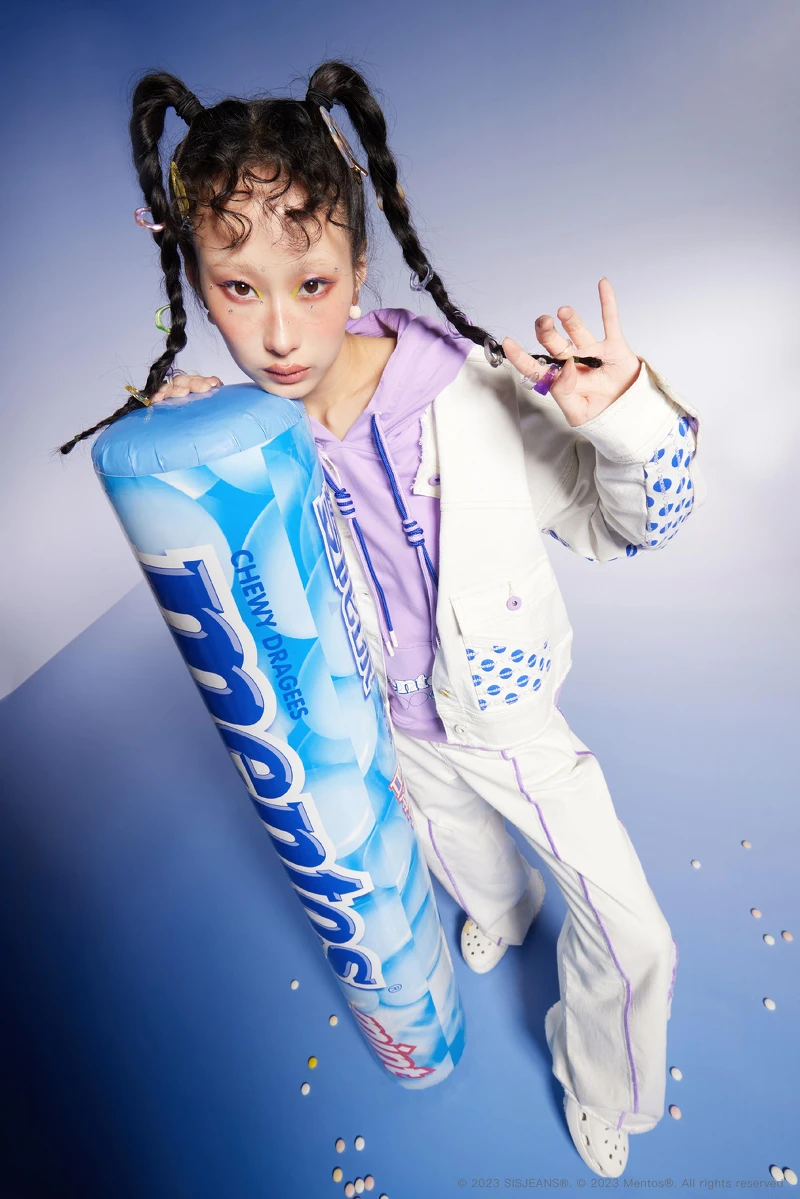 SISJEANS多年的牛仔水洗技術,承襲牛仔的經典樣貌同時也追求創新及蛻變,這次以Mentos 曼陀珠「Yes To Fresh」口號貫穿聯名系列,充滿歡樂氛圍渲染觀眾,巧妙運用繽紛糖果色,包涵葡萄紫、薄荷白、柳橙橘、可樂等令人興奮愉悅的色系套用在牛仔經典藍色與白色上,蘊含新潮又帶有一絲復古玩意的丹寧穿搭風格就此誕生。雀躍地迎接今年秋冬的來臨,煥然一新的牛仔視覺享受,跨界聯手激盪出新丹寧火花,也正悄悄地顛覆牛仔新時代。