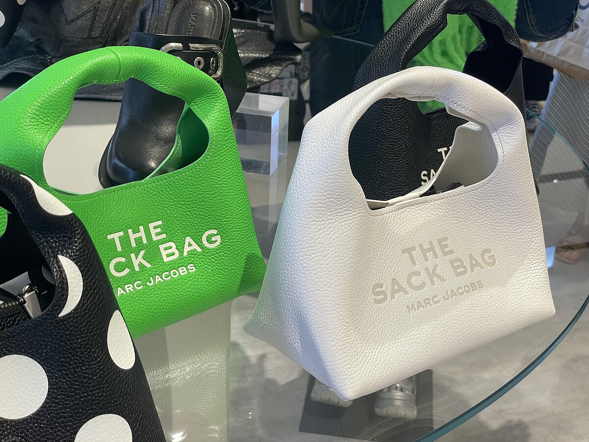 Marc Jacobs Runway秀場上出現一款尺寸超巨大的肩背包,名為The Sack Bag,當時一曝光就吸引眾多目光,隨著秋冬新品上市,Marc Jacobs為The Sack Bag系列順勢推出了日常更好搭配使用的迷你小包尺寸,一體成形的小巧手提包拿起來很時髦,實用的內容量更加分,重點是以2萬元內的價格就能入手,CP值超高,必將成為本季夯款。巨大尺寸的款式有雲朵白和波卡圓點,手提迷你尺寸則有4個顏色:奶油白、隕石黑、電光綠以及波卡圓點。