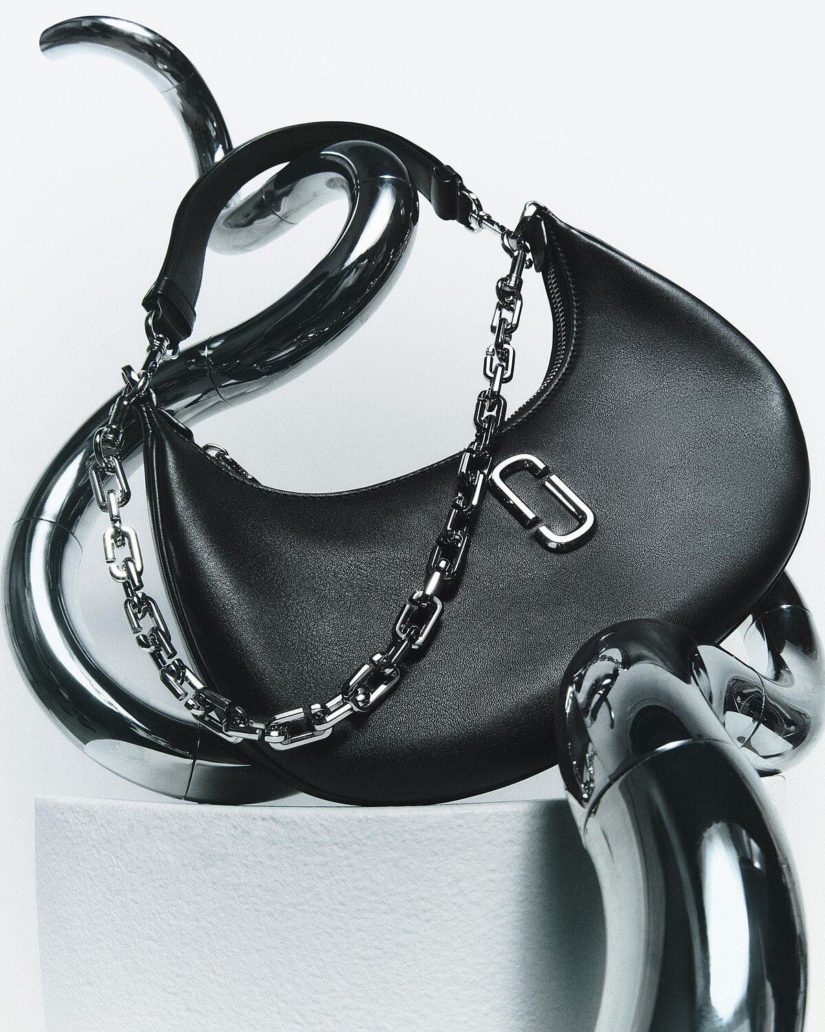 時尚圈近年十分流行的半月包型,簡約百搭,Marc Jacobs本季帶來擁有如同微笑彎曲弧線的The Curve包款,來跟上這波風潮,結合了紐約街頭風和上城的優雅氣息,包面裝飾標誌性雙J Logo,並有皮革背帶與金屬鍊帶可隨心搭配,平滑皮革款共有四色可供選擇:曜石黑、奶油白、芭比粉以及焦糖褐;奢華感的鱷魚皮壓紋則有隕石黑和冰薰紫。