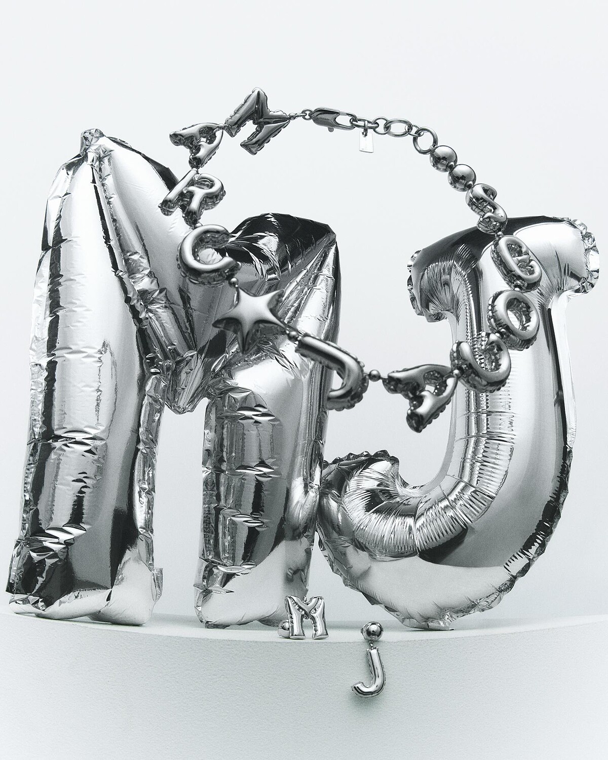 慶生、辦活動常用的英文字母氣球,大家應該都有看過吧? Marc Jacobs 2023秋冬系列將銀色鏡面的字母氣球,縮小變成可配戴的飾品,利用「MARC JACOBS」字樣串連成為短項鍊、寬手環、手鍊戒指……以及不對稱耳環,仔細看會發現連邊緣充氣的皺褶都被製作出來,戴起來非常的可愛又很有前衛Y2K的氛圍。
