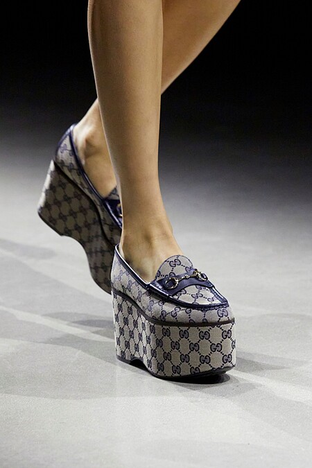 在秀上有一雙鞋擁有超乎其他鞋款的存在感,優雅的樂福鞋型搭配上標誌性的馬銜扣(Horsebit),以及將近10分的厚底設計,是Sabato為了慶祝GUCCI馬銜扣皮革樂福鞋70週年的全新款式。