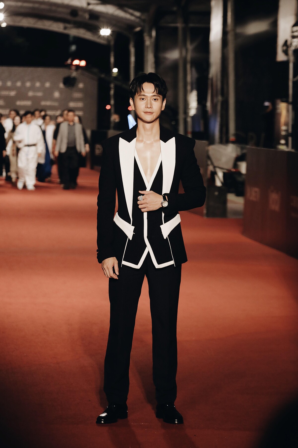 才剛宣布升格當爸媽的夫妻黨劉冠廷與孫可芳,手牽手一同亮相紅毯成為焦點。劉冠廷以BALMAIN的黑白雙層拼接縐紗西裝造型,搭配Christian Louboutin壓紋皮鞋,襯出他高挑挺拔的身型,胸前深V沒有內搭其他單品,而是讓胸肌的線條展露,讓螢幕前的粉絲們飽了眼福!
