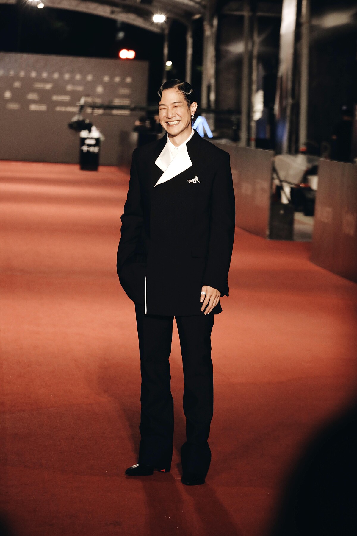 擁有獨特個人風格的薛仕凌,這回紅毯選擇Ferragamo 2023秋冬系列的晚宴西裝造型,俐落長版的輪廓比起其他男星做出區隔,胸前翻領設計也是一細節,腳下搭配的是Christian Louboutin皮革短靴。編輯小故事分享,現場拍攝時,攝影師們調侃他:「眼睛張開!」讓經常憋不住笑容的薛仕凌,再度把眼睛笑瞇成了一條線。