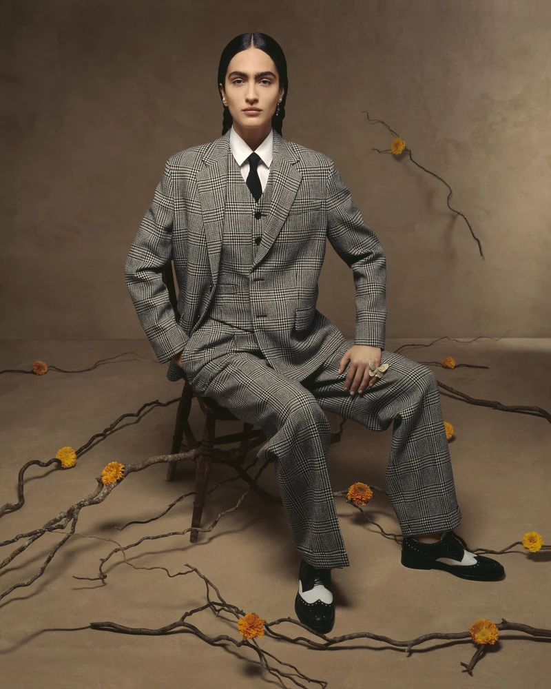 除了身為畫家,Frida Kahlo也是一位女性主義者,她在19歲時便穿上了當時男性穿著的三件式西裝,從服裝打破性別界線,這故事讓一直以來注重女權的Dior創意總監Maria Grazia Chiuri特別有感,因此在本季的西裝輪廓中,不見強調女性化的修身腰線,而是鬆身的中性剪裁,此外Frida Kahlo與墨西哥文化的緊密連結,也一一體現在本季系列中。