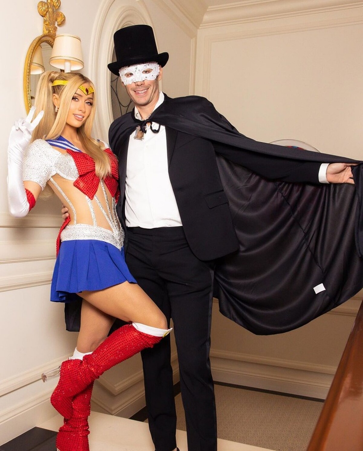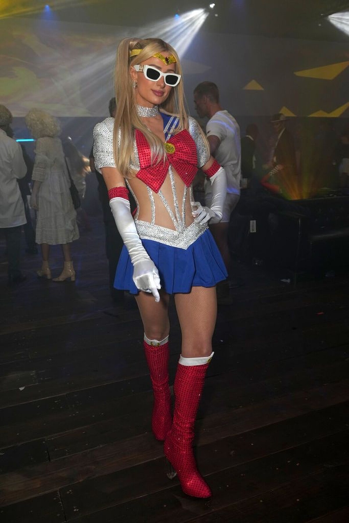 元祖千金芭莉絲希爾頓2022萬聖節化身日本經典漫畫《美少女戰士》中的「月光仙子」登場,一頭金髮雙馬尾搭配鏤空水手服,連燕尾服蒙面俠自己帶上!