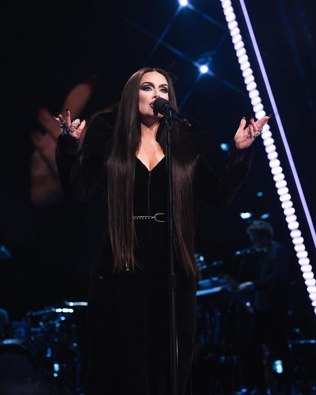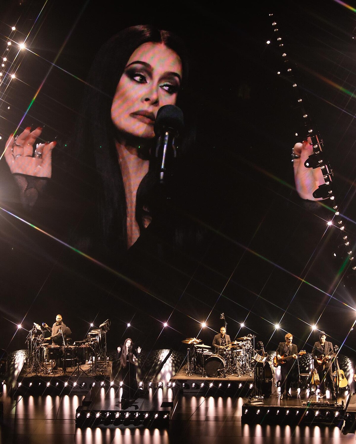 Adele則是在拉斯維加斯的表演舞台上以一身歌德系暗黑造型化身《阿達一族》中的媽媽「魔帝女」一角。