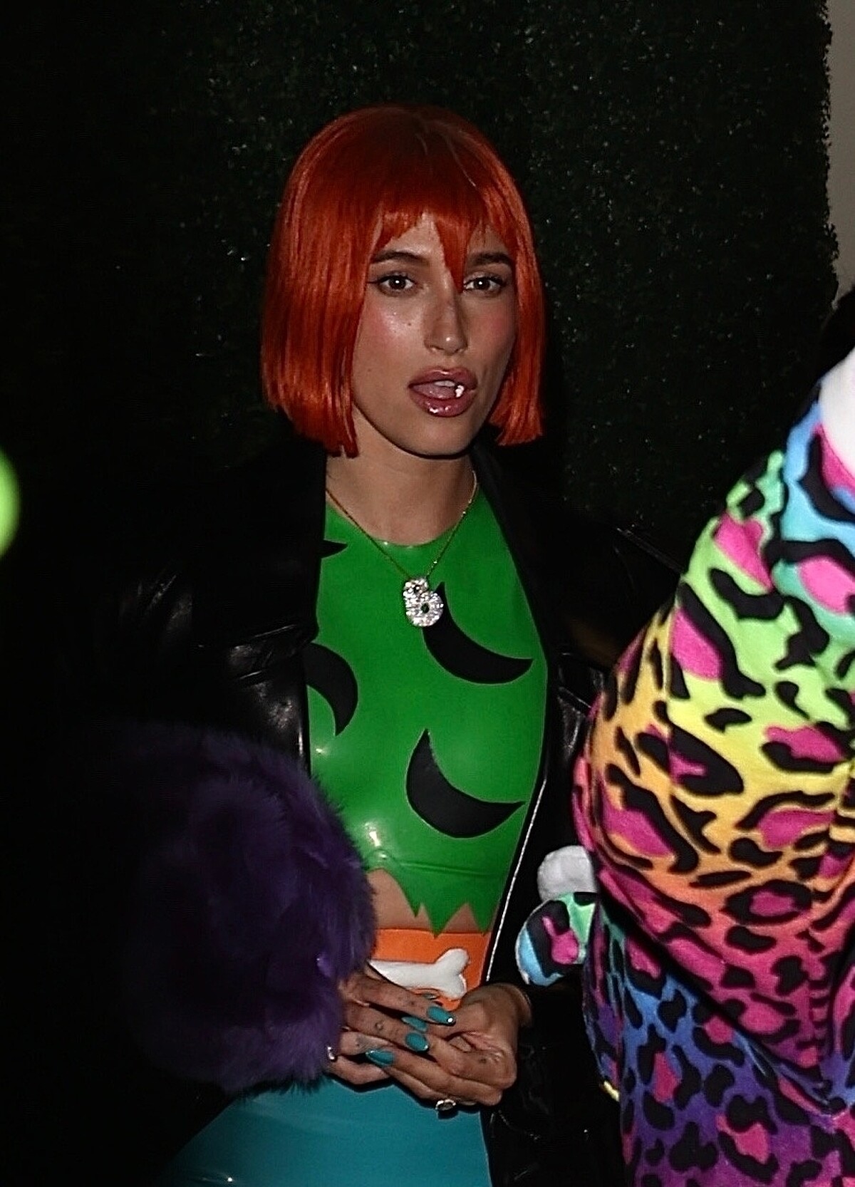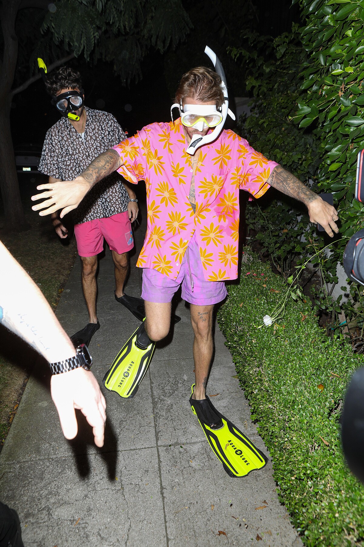小賈斯汀賢伉儷兩人以經典動畫《摩登原始人》 (The Flintstones)中佛林史東夫妻的女兒佩絲、兒子班班的造型參加了由Vas J. Morgan 和 Michael Braun 主辦的萬聖節派對;另外小賈斯汀在另一場派對上則是以一身度假潛水裝扮登場。