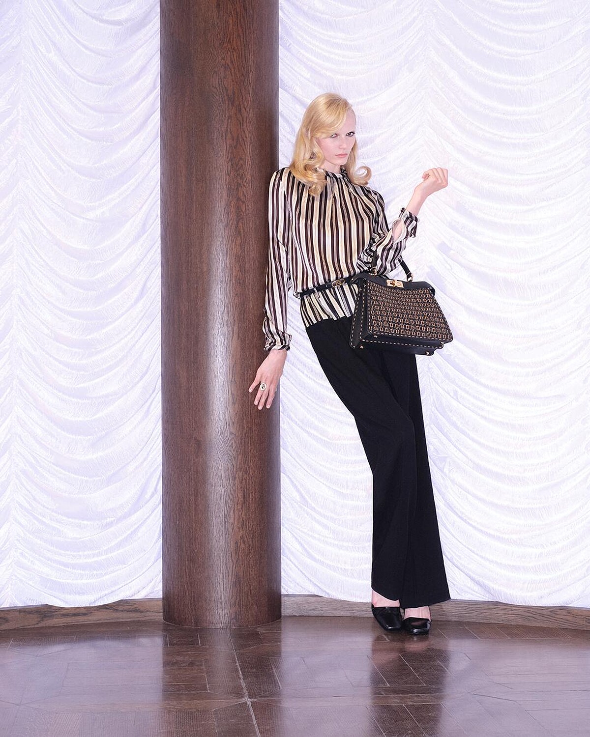 在這次聯名系列中,不同於 Kim Jones 以前將大量的街頭元素融入,反倒是多了分優雅韻味。在米蘭與羅馬間穿梭是 Stefano Pilati 此次創作的靈感來源,保留了 Fendi 的品牌核心,呈現更多優雅中性的奢華面貌。