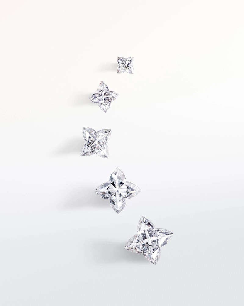Louis Vuitton以品牌最經典的Monogram圖騰為靈感藍本,進而研發出獨一無二的LV Cut鑽石車工,當中包括圓瓣花朵切割(Flower Cut)與星型切割(Star Cut),兩者的切面比傳統高上許多,既有設計辨識度,鑽石火光的表現更是璀璨亮眼,且值得一提的是,LV Cut的耗材率超過原石的50%,如此才能達到LV的標準,或許也只有路易威登才做得到的。本系列推出的鑽戒以兩種主鑽為主,如上述的星型切割(LV Monogram Star Cut)以經典的圓型明亮式鑽石,售價隨主鑽克拉數與戒圈鑲鑽多寡而異動。