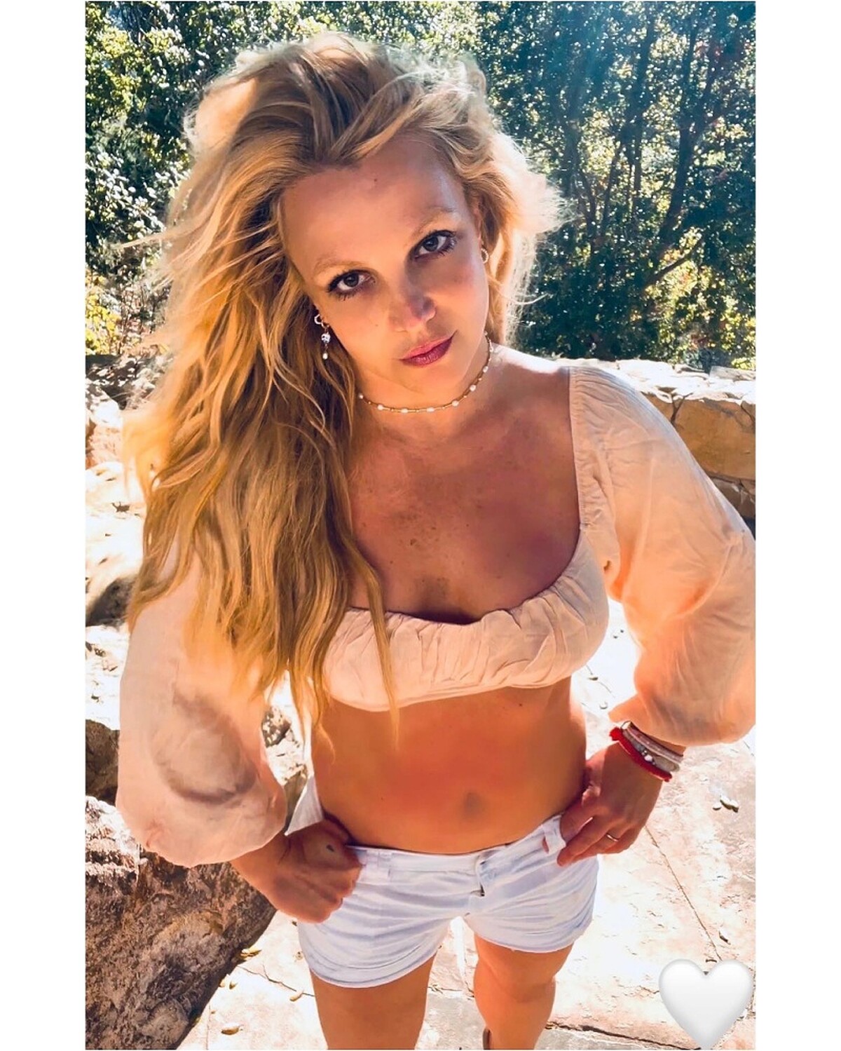 從布蘭妮過去的造型中不難發現,他對自己的腰身是非常有自信的,短版上衣露出緊實的腹部與肚臍環算是基本標配,所以在私下的穿搭造型上也很頻繁的挑選短版上衣的單品,無論是雪紡紗上衣、鏤空襯衫、連帽上衣都是以短版的設計作為優先選擇。