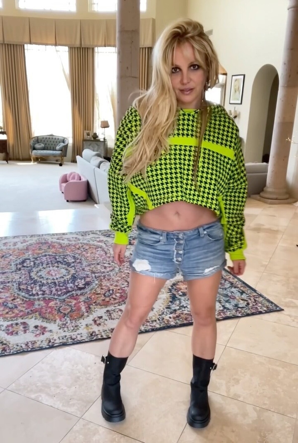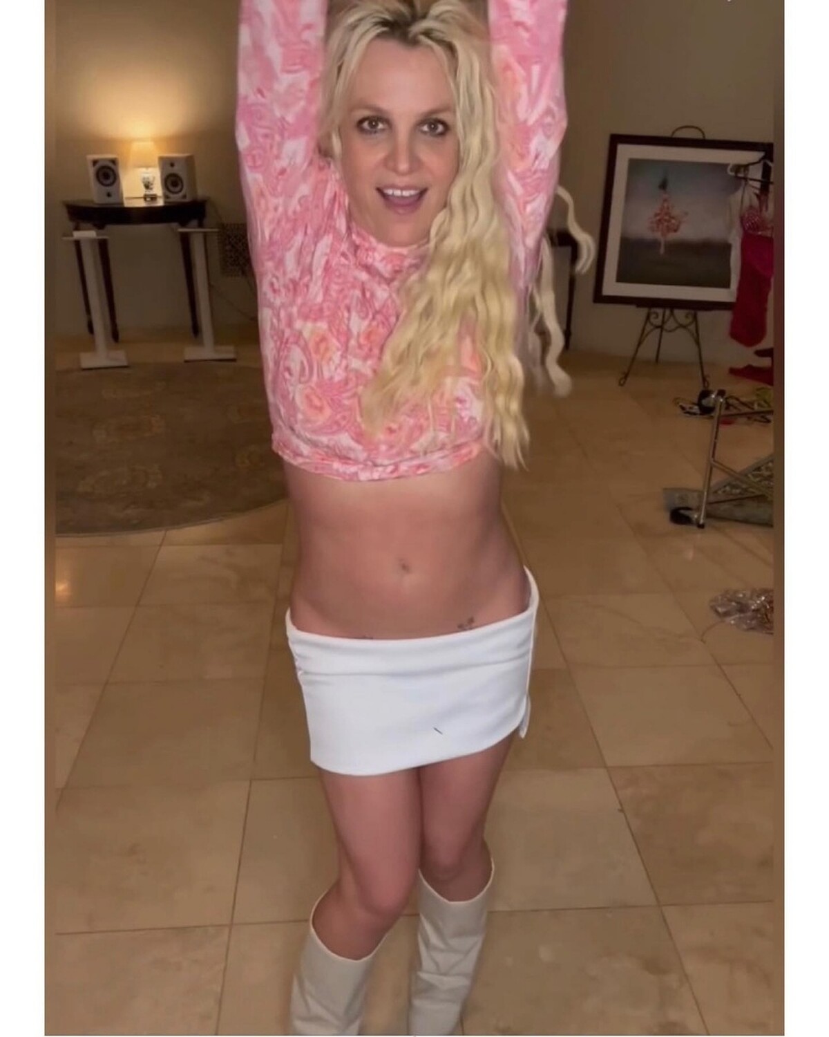 在下身的搭配布蘭妮也很堅持個人一貫的風格,在她出道時的人氣巔峰期剛好是2000年的時代,當時美國流行的正好就是超低腰褲的穿搭,這樣的穿搭風格延續至今,各種下身的單品包括百褶裙、短褲、喇叭牛仔褲等全都要「超低腰」,直接化身人間Y2K!