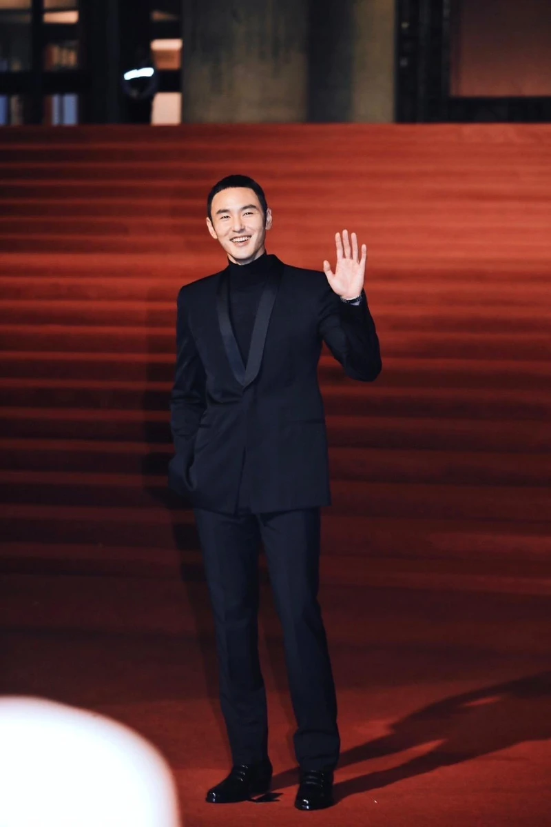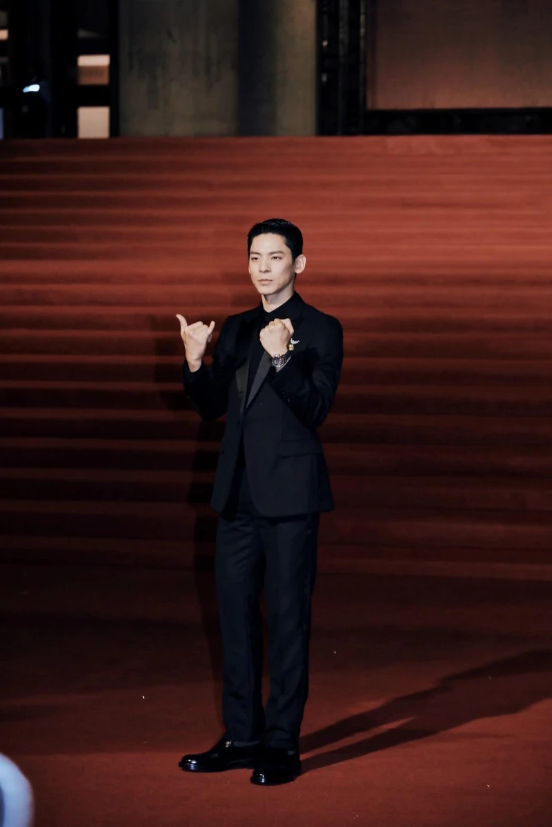 林柏宏同樣以簡約紳士的黑西裝現身,加上黑色腰封增添層次,並有Longings腕錶、Tiffany & Co.的胸針珠寶點綴。