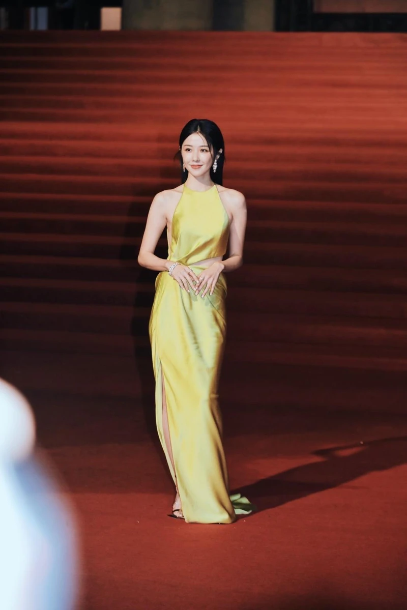 楊貴媚今晚穿著一襲黑色斷面貼身禮服,綠色裙襬在身後拖曳,巧妙奪目,搭配上Piaget珠寶,高貴氣息不言而喻。