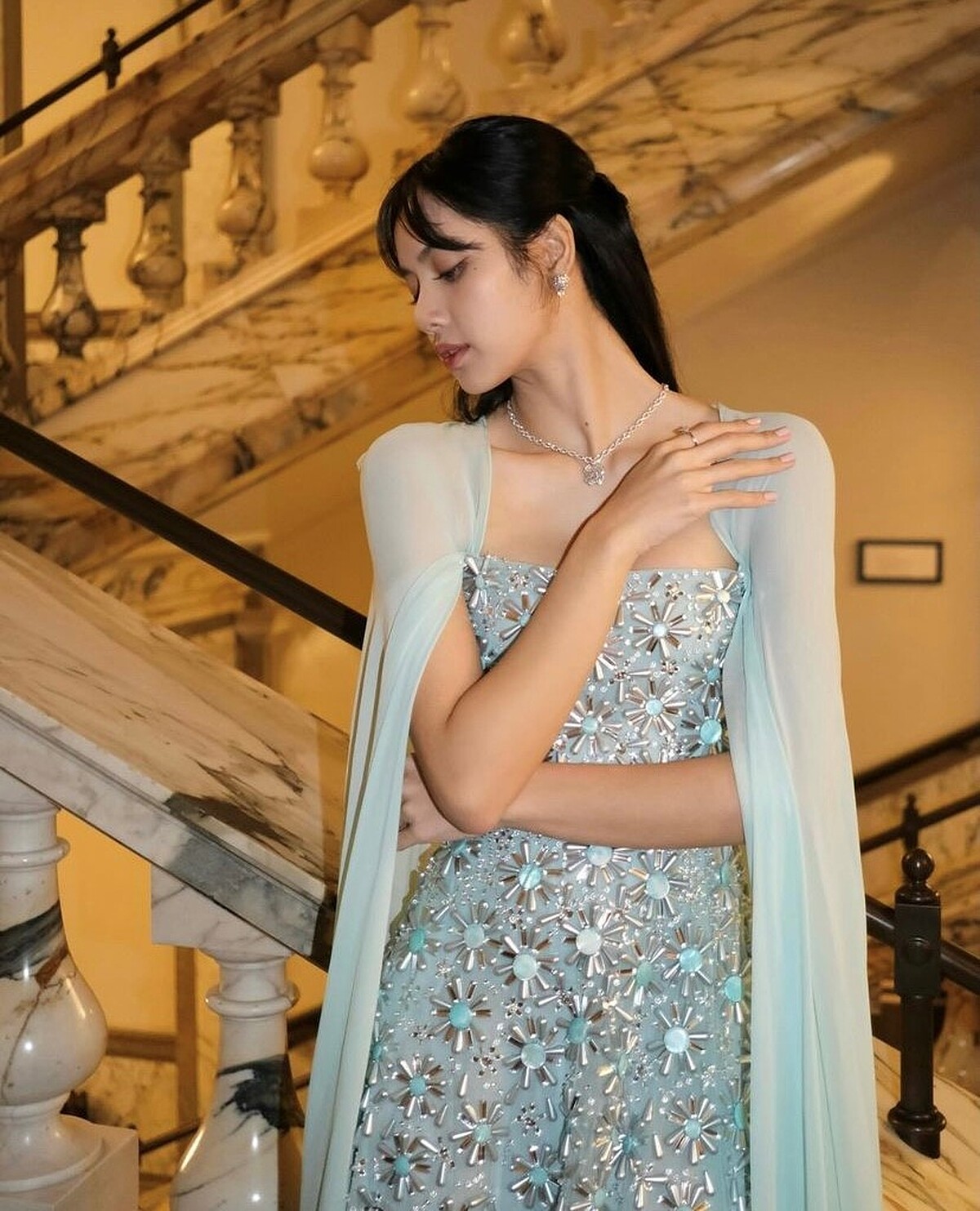 Lisa於國宴上以一襲水藍色披肩禮服現身宛如真人版《冰雪奇緣》艾莎公主,搭配來自寶格麗的鑽石項鍊與耳環;畫面轉至為了表揚成員們為第26屆聯合國氣候峰會(COP26)擔任宣傳大使與其參與貢獻,由英王查理斯三世頒贈MBE勳章儀式上,Lisa換上禮服套裝,與BVLGARI腕錶和戒指。