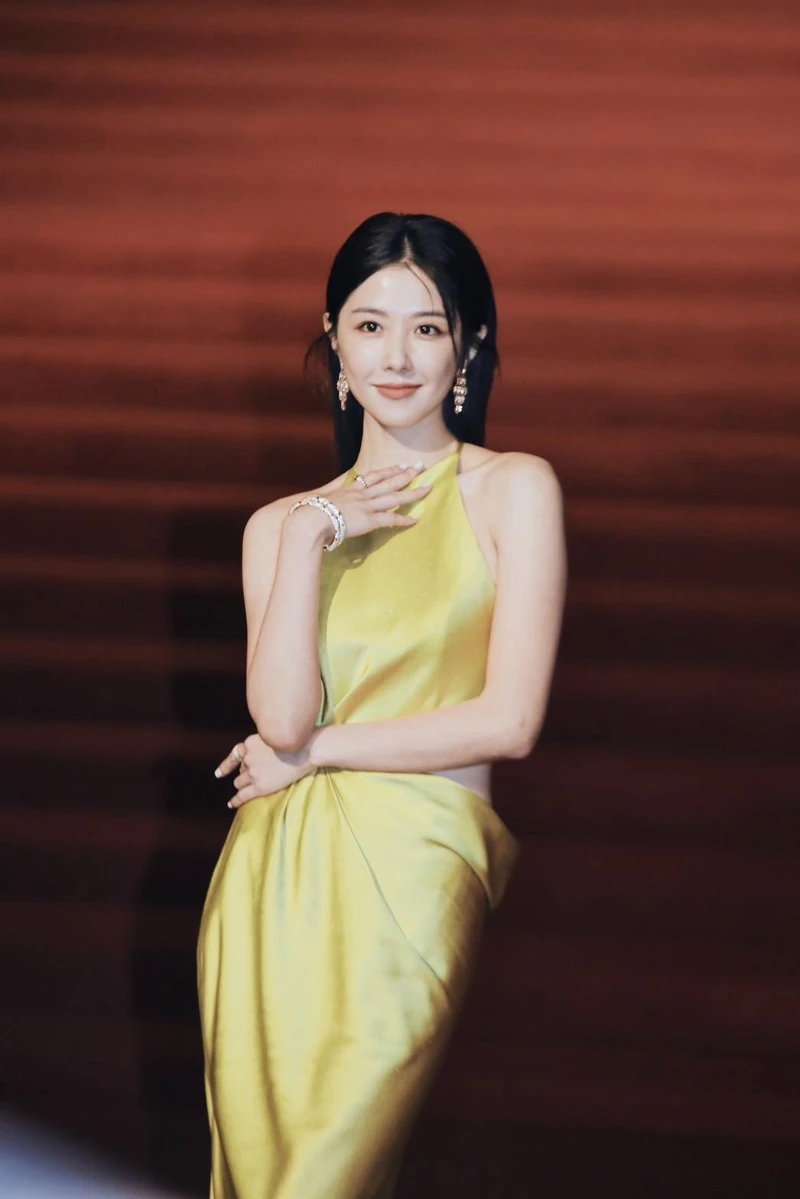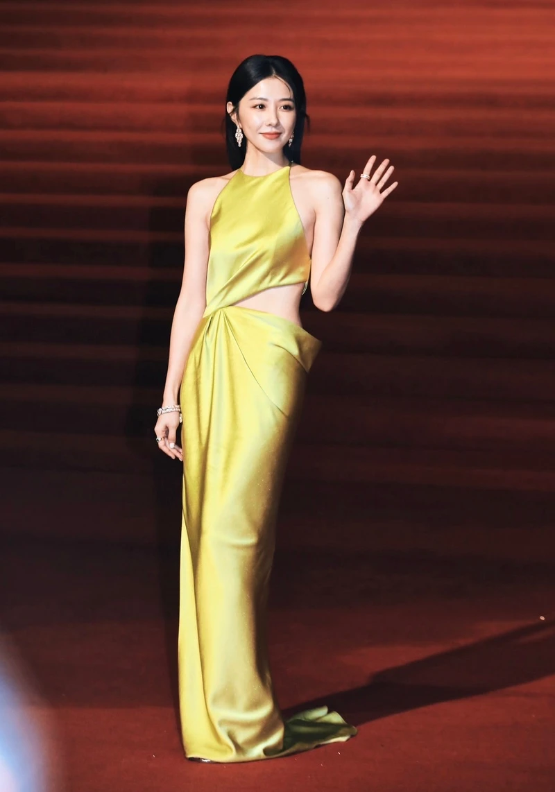 邵雨薇以一身亮黃色腰間鏤空的緞面禮服登上金馬紅毯,也是今年紅毯上少見的禮服色系,腰間的鏤空巧思與搭配得宜的珠寶、髮型,讓邵雨薇成為紅毯上亮眼的焦點。