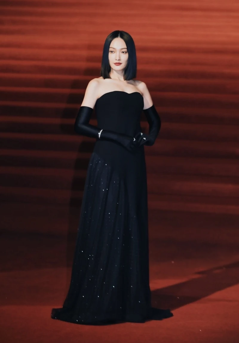 選擇黑色系長禮服造型登場的小美林映唯,下身裙擺有著閃亮的精緻細節,搭配上長至手臂的黑色手套與珠寶飾品增加了時髦度,帶點冷艷的氣場,是今年紅毯上美度讓人難忘的一位。