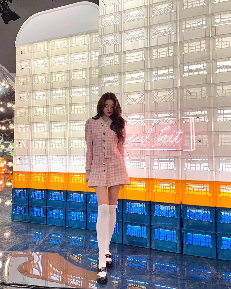 有著「人間CG」的超完美身材比例,張員瑛也是韓國女團中非常瑪德蓮千金風格穿搭的佼佼者,而張員瑛在穿搭中有著更多的套裝式搭配,但色系上則是偏向更多的粉色系,是甜度較高的千金感穿搭,成套的粗毛呢套裝可以說是瑪德蓮千金風的速成單品,想要不費力地完成千金感,必須收一套。