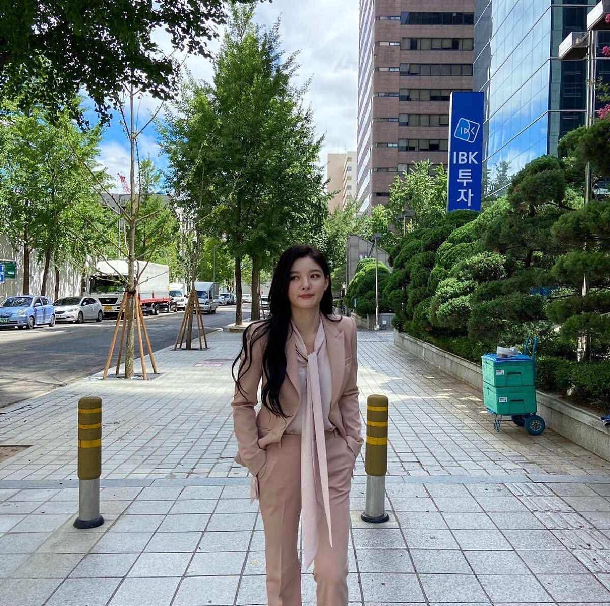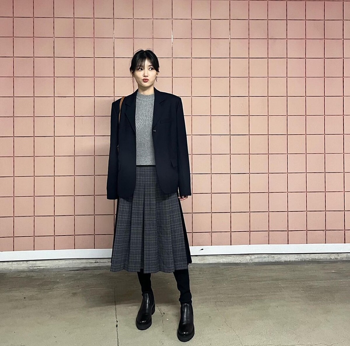 伴隨四季的必備單品絕對少不了西裝外套,除了甜美打扮之外,金裕貞偶而也會穿上中性的西外,展現率性風格卻不失女人味,除了oversized款式以外,也可以選擇有腰身的西外來搭配合適的襯衫和褲子或裙裝,讓整體比例看起來更俐落、流暢。
