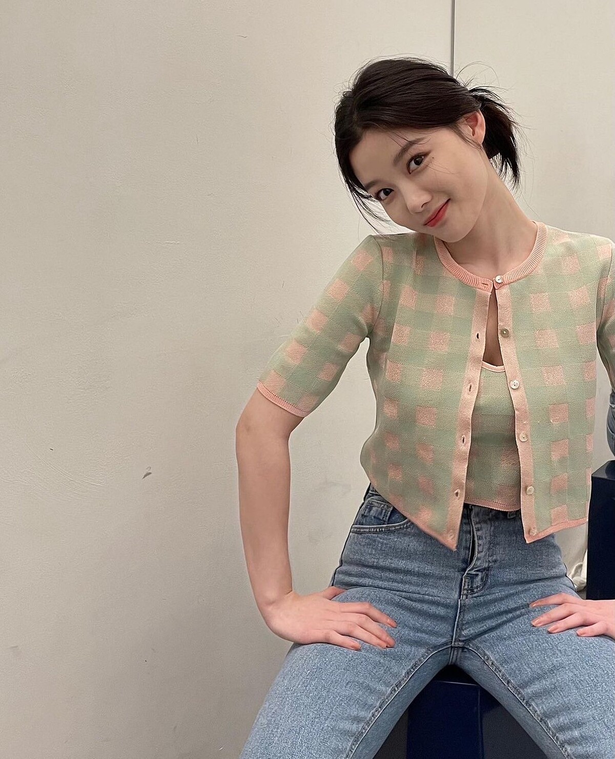 每個女生衣櫃裡總會發現多款色系的牛仔褲,這也是金裕貞常用穿搭公式之一,她選擇修身牛仔褲,突顯纖細的身形,同時展現俏皮風格,另外,她也喜歡套上寬腿版型的牛仔褲,打造出街頭風格。不僅經典百搭,還能輕鬆應對各種場合同時增添了一絲休閒與隨性。