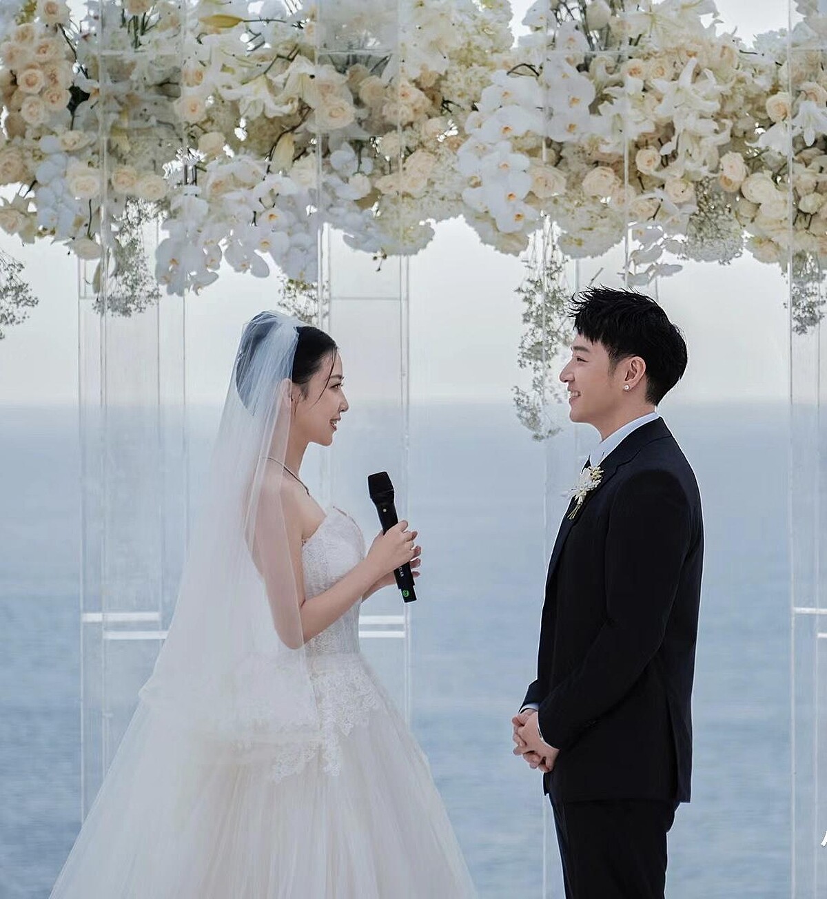 宣云披頭紗所穿的主婚紗為Vera Wang Haute高級訂製Acacia系列禮服,堅挺的魚骨胸衣勾出窈窕身形,加入浪漫蕾絲,將清新唯美氛圍推至最高,據悉,宣云一年前便已訂製此款婚紗,讓婚禮更臻夢幻。