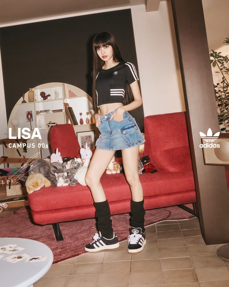 在Samba稱霸2023夏季後,CAMPUS 00s準備接手了嗎?在Blackpink代言照中全員穿上的胖胖復古滑板鞋,Lisa腳上這雙以黑色麂皮搭配經典白色三紋標誌,非常適合甜酷的流行穿搭。