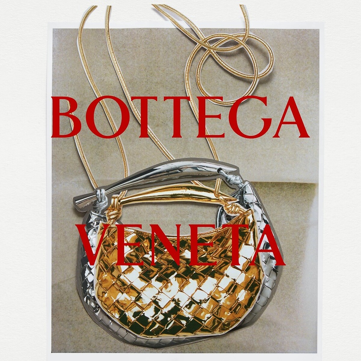 今年Bottega Veneta的聖誕系列一改品牌往日的低調氣質,換上張揚搶眼的金、銀色系,除了單色之外還有金銀色皮革混搭編織的設計,一展時髦繽紛感。