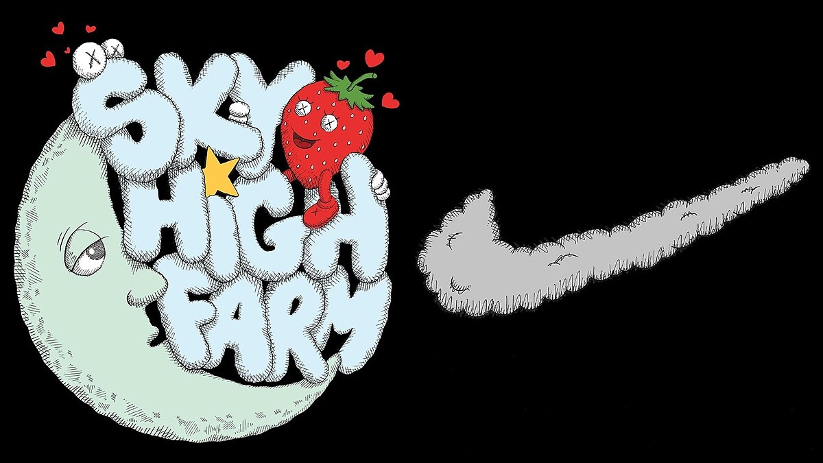 Sky High Farm的招牌設計為互相擁抱的草莓與彎月,以細膩的卡通筆觸呈現,其服裝作品大多也以類似的鮮豔童趣風格為特色,像是女團NewJeans便曾經穿上他們家的衣服。