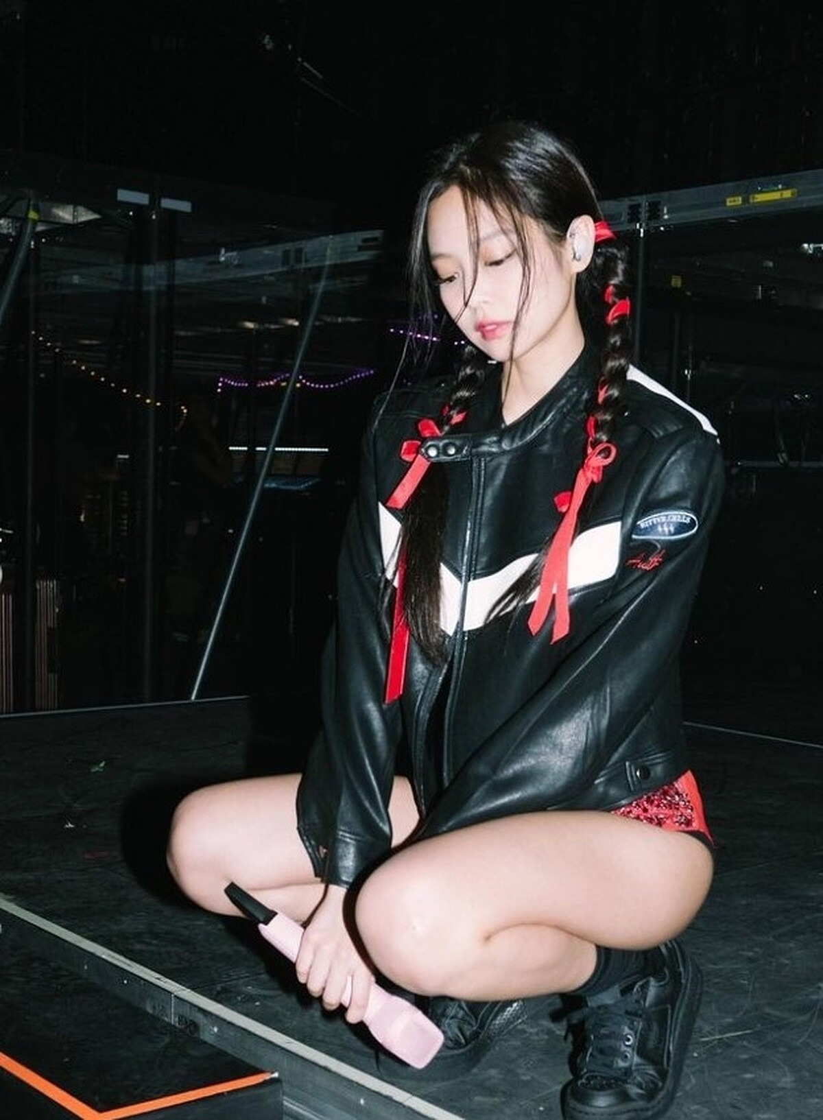 Jennie 在多場演唱會中,就完美演繹了「 Blokette 」的風格,全套芭蕾舞裙,配上動感十足的賽車外套,最後配上紅色蝴蝶結呼應色彩,將甜美與酷帥融為一體;另一套則用偏運動風的短裙,配上芭蕾風的堆堆襪,耳後蝴蝶結點亮風格。