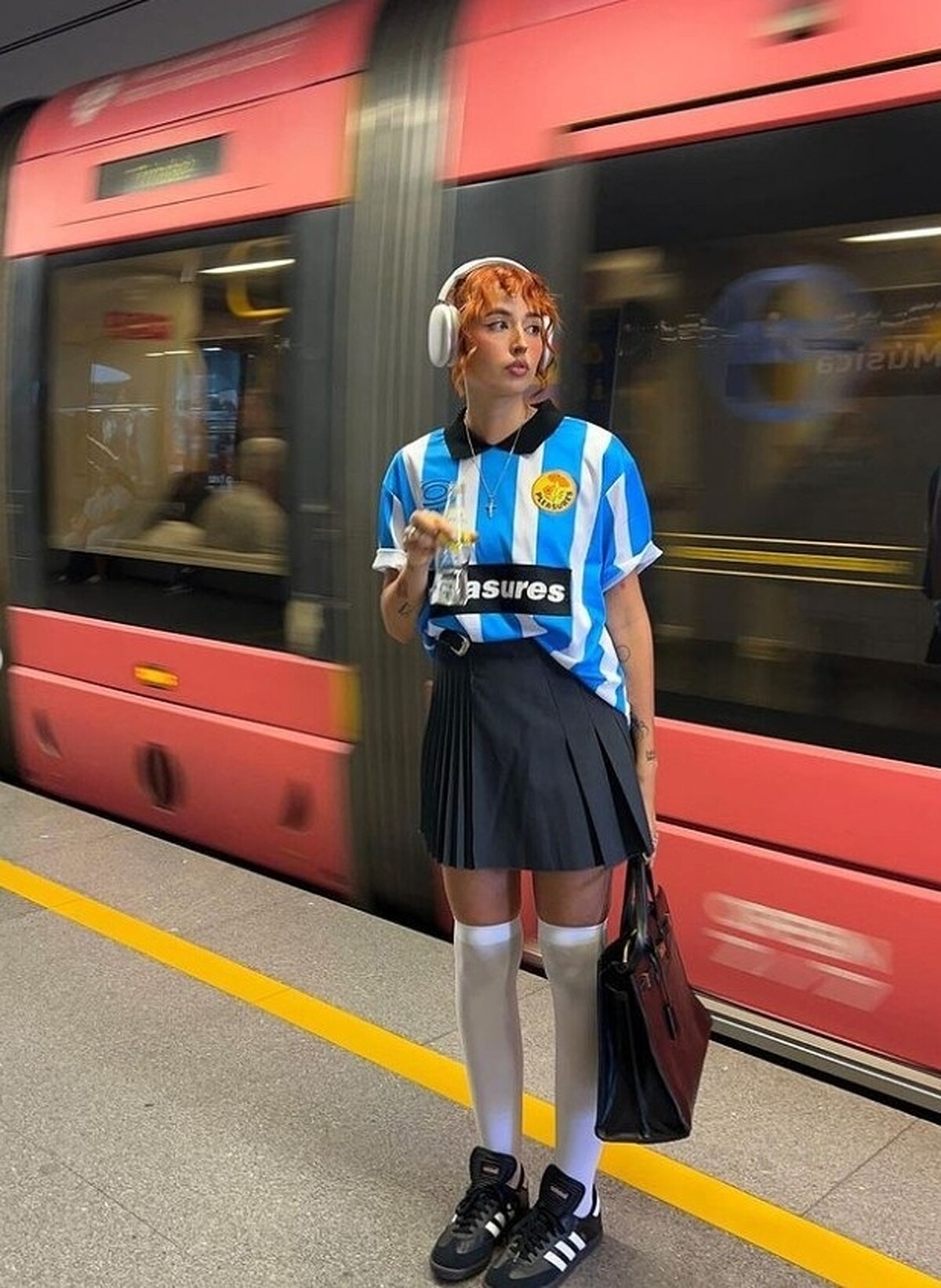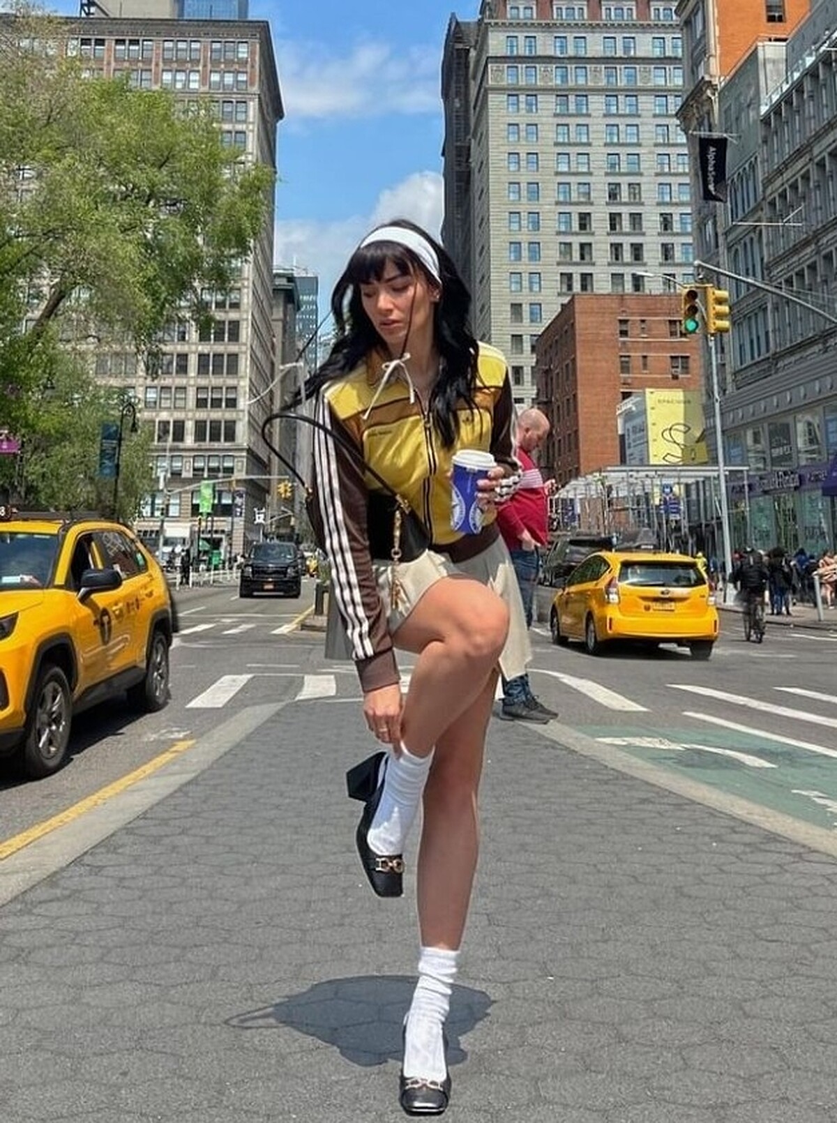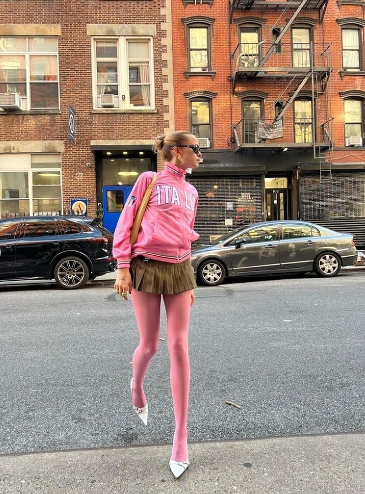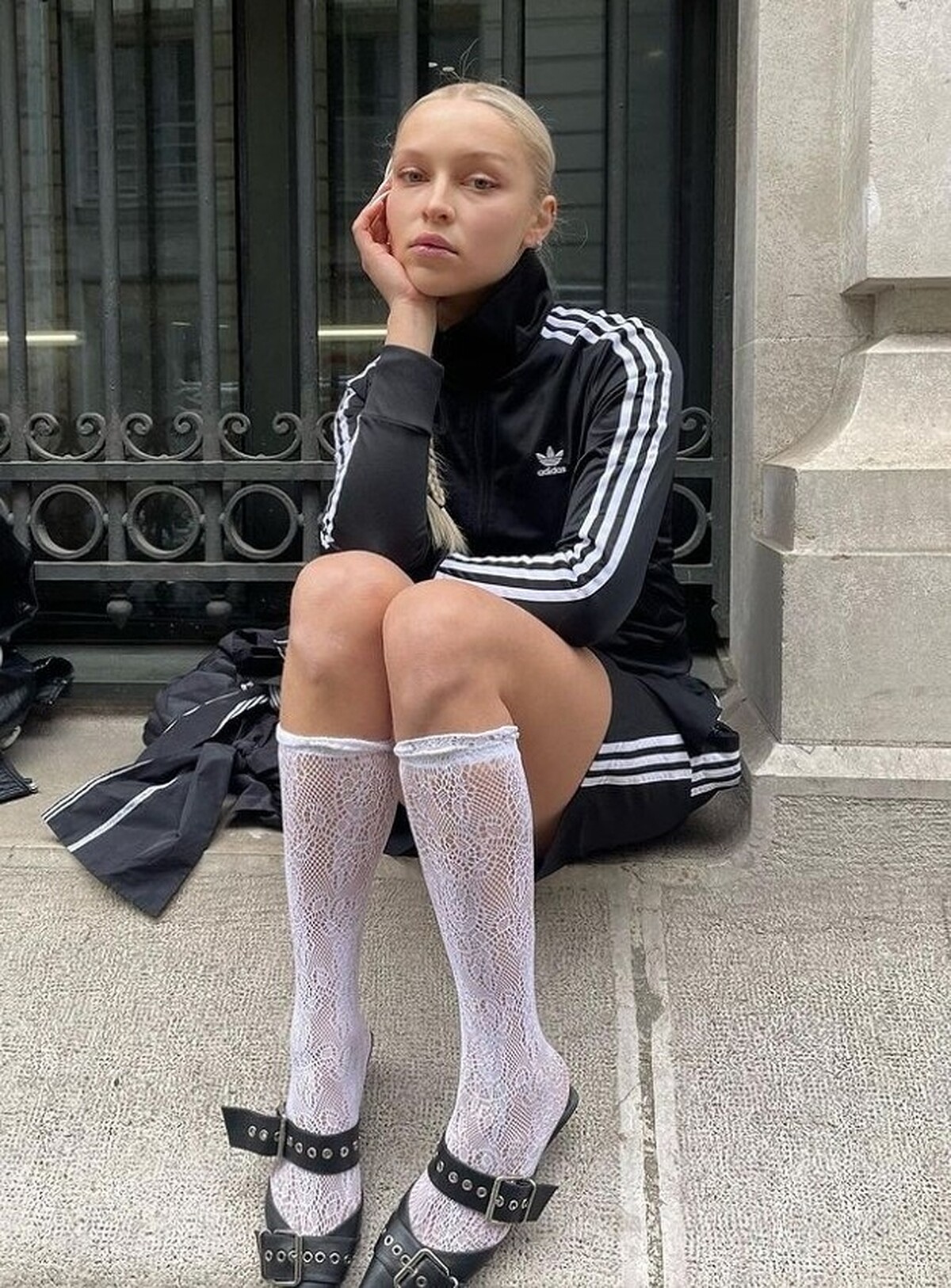 Blokette 造型中,若是全身已經是運動套裝,那麼此時利用膝襪、絲襪等 Coquette 氛圍單品,最後再根據和諧度,選用 Adidas Samba、Onitsuka Tiger's Mexico 66 等復古運動板鞋,或瑪麗珍鞋、芭蕾舞鞋、尖頭高跟鞋等,更具「嫵媚氣質」。