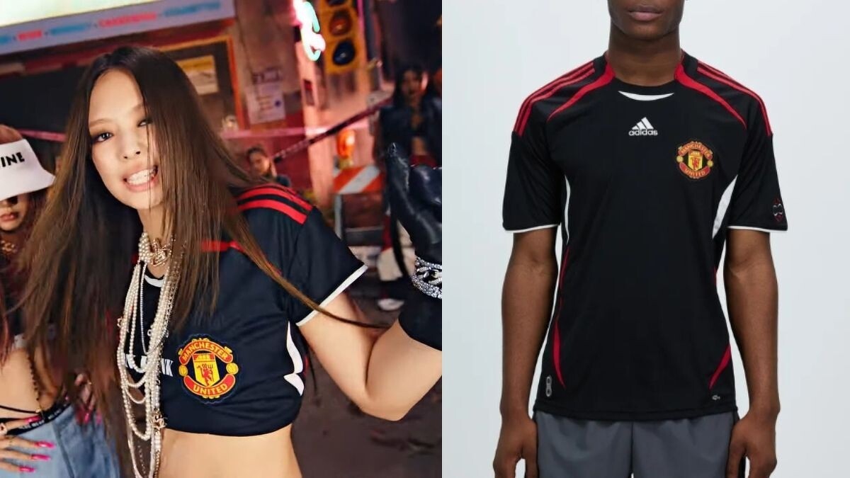 Jennie 在《Pink Venom》MV 當中,身上穿的的曼聯足球球衣來自 adidas 2021 年底致敬 06 年世界盃的系列 Manchester United Teamgeist Jersey,成功帶起全球粉絲熱銷。