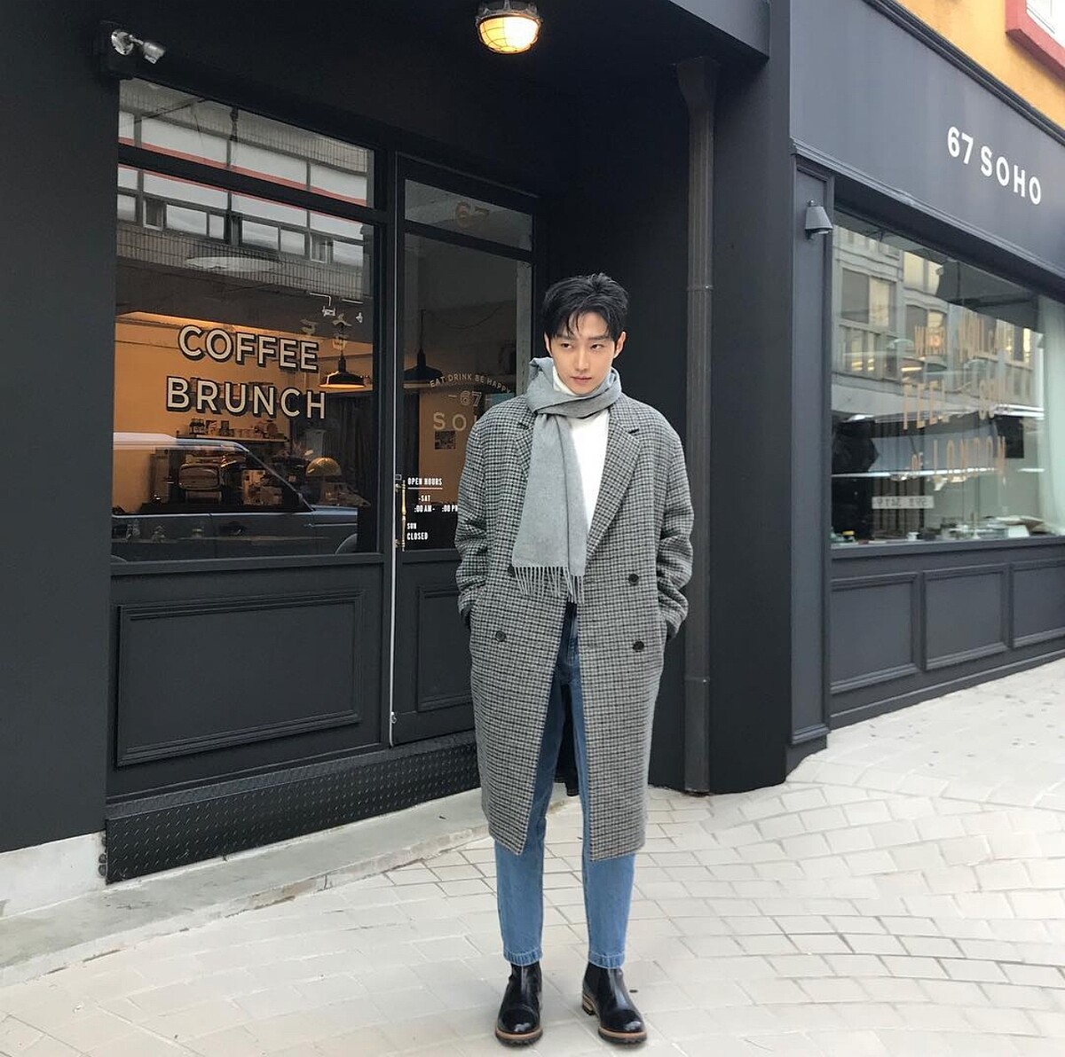 秋冬來臨,身材高挑的他以基本的黑白灰配色搭配大衣和西裝外套,並混搭格紋元素,打造出知性氛圍感。大衣和西裝外套的版型突顯他挺拔身姿,簡約大方的設計中注入一點成熟魅力,妥妥拿捏穩重氣質!他也選擇毛衣跟襯衫疊穿,增添造型層次感,整體注重細節和品味,完美展現文青氣質。建議可以使用一些配件,像是眼鏡、皮帶、或圍巾來妝點。