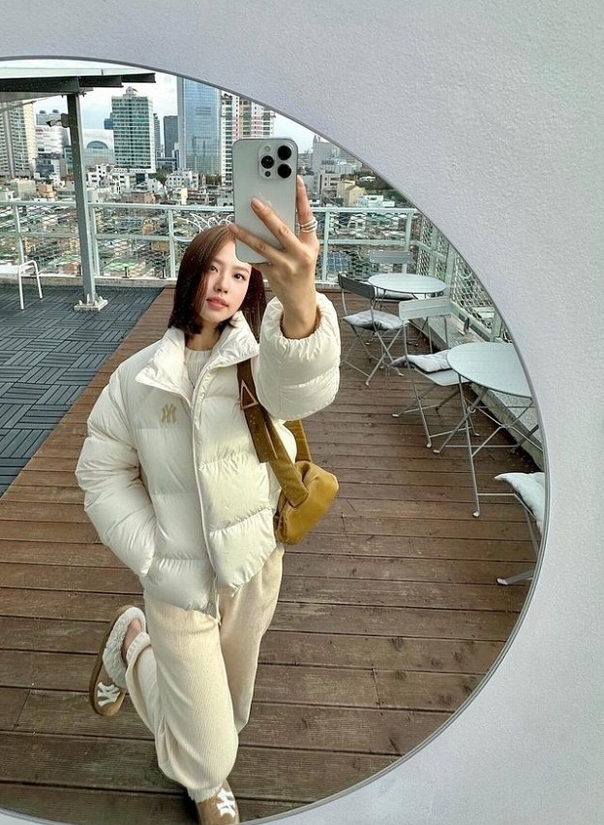 而在鄰家女孩風這塊,高旻示也同樣是穿搭佼佼者,她在日常穿搭中經常使用牛仔元素,不管是簡約的牛仔外套搭配白色T恤,還是牛仔裙裝,都同樣給人一種親近的感覺;另外他也曾穿過整套奶杏色的休閒;或者是利用鴨舌帽以及燈芯絨牛仔褲,來打造一種休閒、時尚兩手兼得的穿搭。