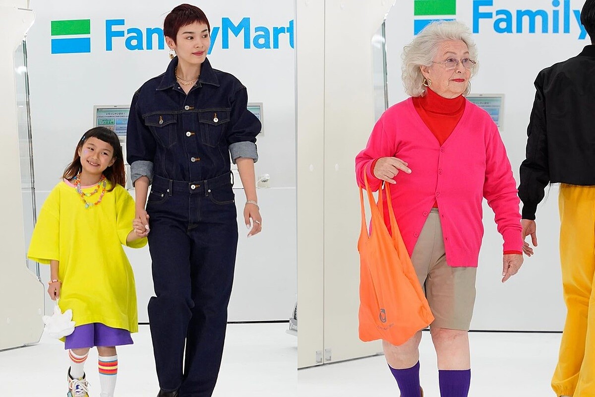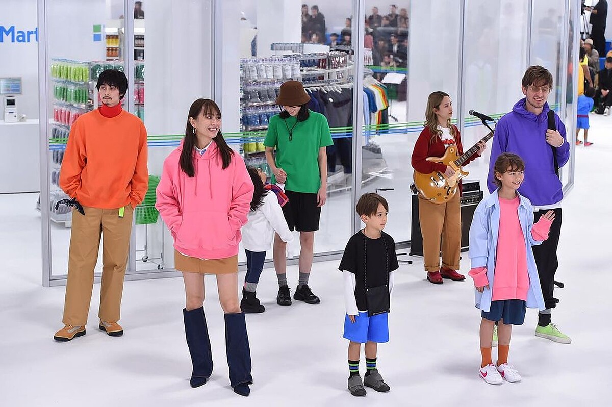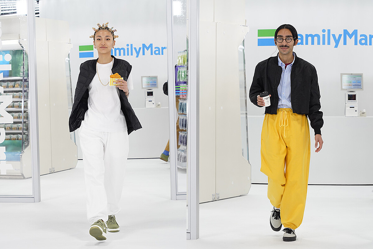 模特兒們穿著全新「未來Family Mart」主題的新鮮造型,以不分年齡、男女老少不同的組合,實際挑選商品後走出大門,演示大家每天進出超商的日常風景。秀場上更邀請到於Netflix日劇《初戀》(First Love)中飾演高中時代女主角的新生代女星八木莉可子,以及《大叔之愛》男星吉田鋼太郎登台走秀,音樂部分則是由歌手曾我部惠一擔綱主導,每一Part的細節不輸給大牌時裝秀。