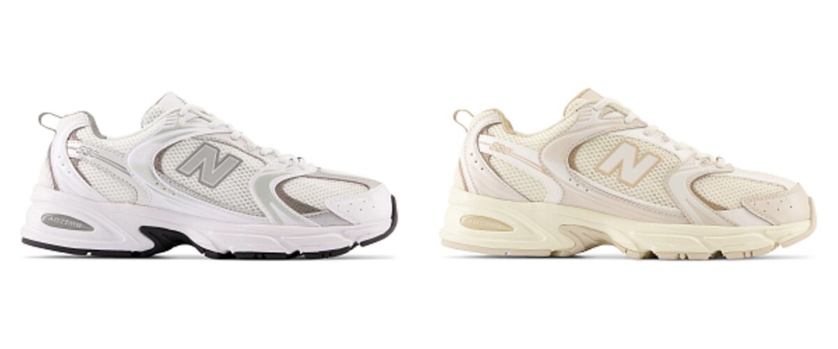 同樣也是被IU欽點的New Balance 530,鞋身上經典的銀色線條與復古跑鞋鞋型,當好搭上的2023年的Y2K回歸熱潮,今年釋出的兩款春日新色MR530AA「雪泡奶油」與 MR530AD「氣泡銀白」更是在熱賣榜上一次拿下兩個名次。