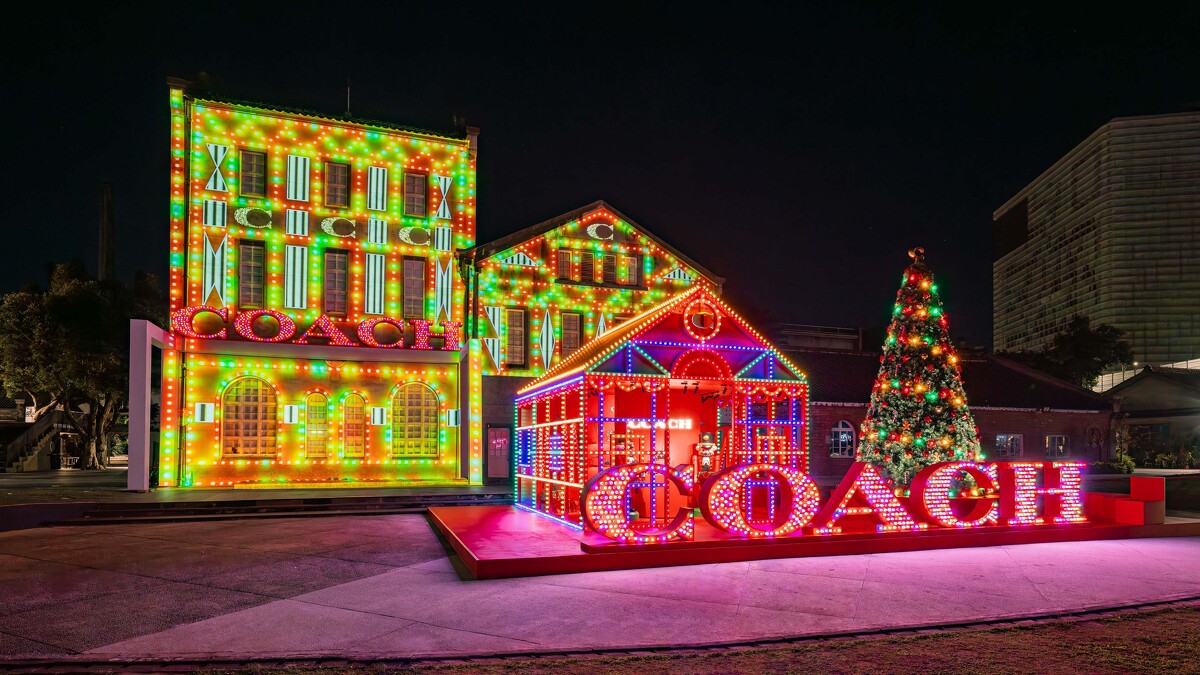 Coach延續2023秋季「Wear Your Shine」標語,替年末佳節也營造了最「Shine」的主題活動,於台北華山1914文創園區的華山劇場,設立了一座閃耀七彩燈光的聖誕城!現場設置高達6米的聖誕樹,以及置滿LED燈光的紅色Lighthouse多彩光屋,內部陳設Coach Holiday系列金屬光澤的Shine Collection 2.0手袋系列,以及全新Black Collection曜黑系列。