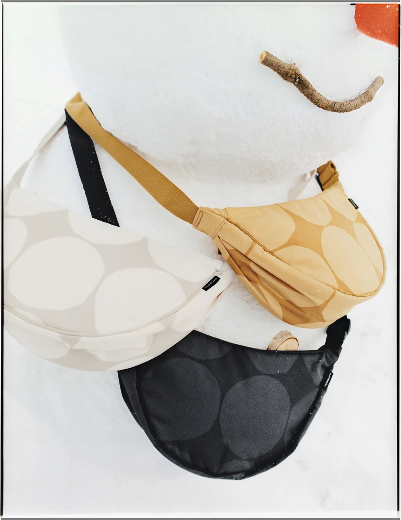 Uniqlo與芬蘭品牌Marimekko已是合作多年的好夥伴,聯名系列至今也吸引了不少忠實粉絲,每一季雙方都能帶來新鮮的火花。今年Uniqlo x Marimekko秋冬聯名系列總共帶來了女裝、童裝共9款單品,包含了加入HEATTECH面料的高領T恤、冬季必備保暖刷毛外套……以及印花圖騰襪子,Uniqlo全球熱賣的弧形半月包,則是在這次聯名系列中帶來了巨可愛的印花版本!