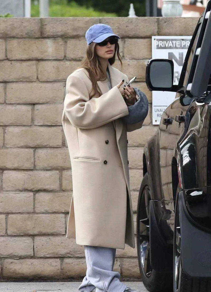 搭配休閒褲子:羊絨外套不僅可以搭配淺色褲子及牛仔褲,還能將休閒類的褲子穿出風格,比如Jennie 就利用了略帶機車風的皮革羊絨外套,底下可以搭配緊身類的鯊魚褲、瑜珈褲,不僅舒適又兼具時髦;另外超模 Hailey Bieber 在廓形羊絨大衣,底下穿著灰色棉褲,搭配棒球帽,鬆弛感十足,愛運動的女孩不妨也可在今年冬天試試看這樣的穿搭。