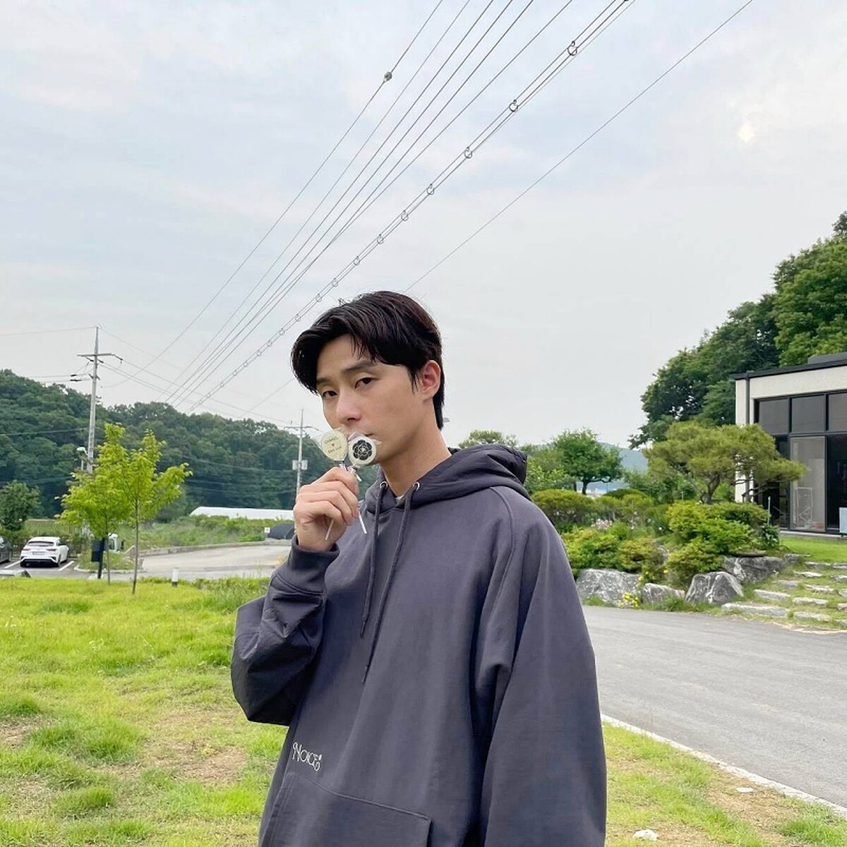 連帽上衣也是朴敘俊喜愛的單品之一,在不用任何思考的狀況下套上身就出門,簡單輕鬆隨手拉上衣服的連帽戴上,直接就很有型。