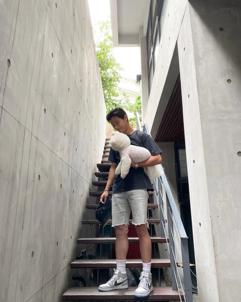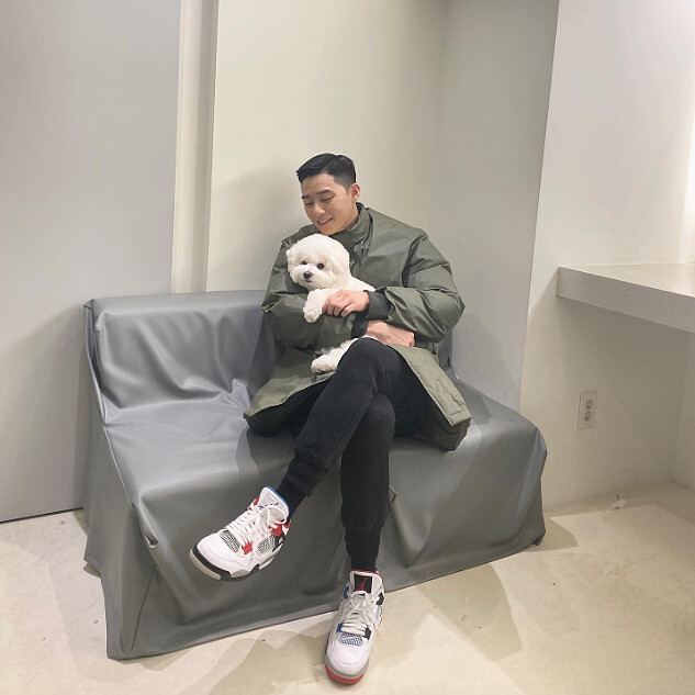 喜歡簡約休閒感的朴敘俊,雖然不喜歡多層式,但經常搭配愛犬辛巴疊搭服裝,成為全身造型最可愛的亮點(笑)