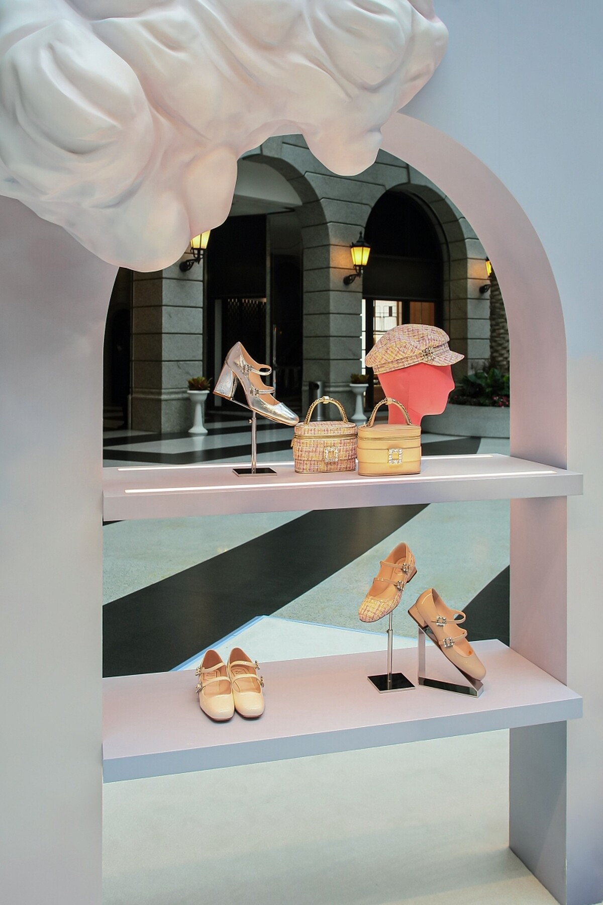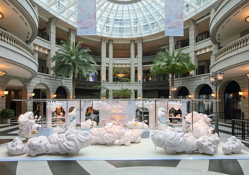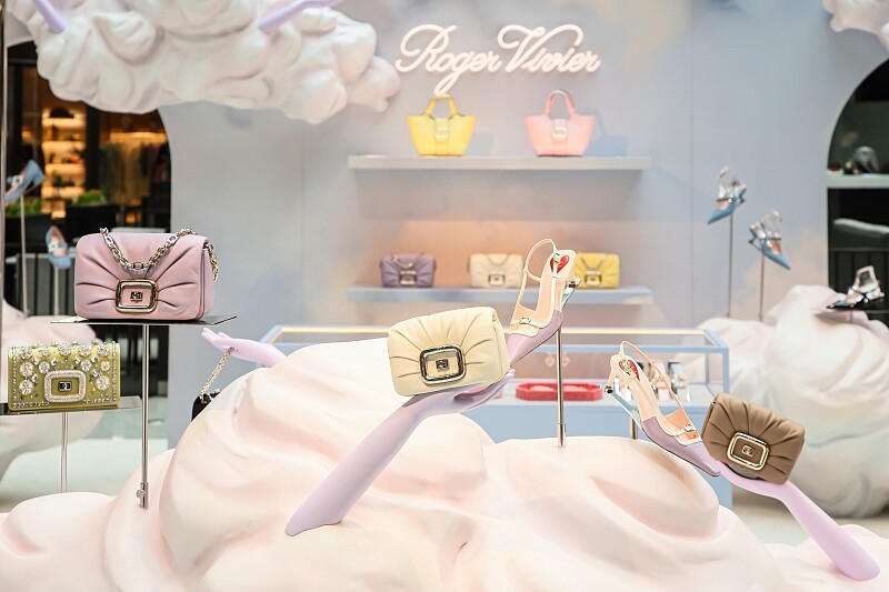 Roger Vivier於Bellavita重現了Candy Clouds藝術展場,通透的空間搭配穹頂灑落的光線,一朵朵宛如棉花糖般的雲朵彷彿漂浮穿梭在中庭,全場採用六零年代鮮明的普普藝術色調,每個角落都是美照打卡的完美背景,並展示本季全新Viv’Canard高跟鞋經由創意總監Gherardo Felloni重新詮釋後,以淡紫色、黑白色的摩登貓跟鞋全新亮相,。