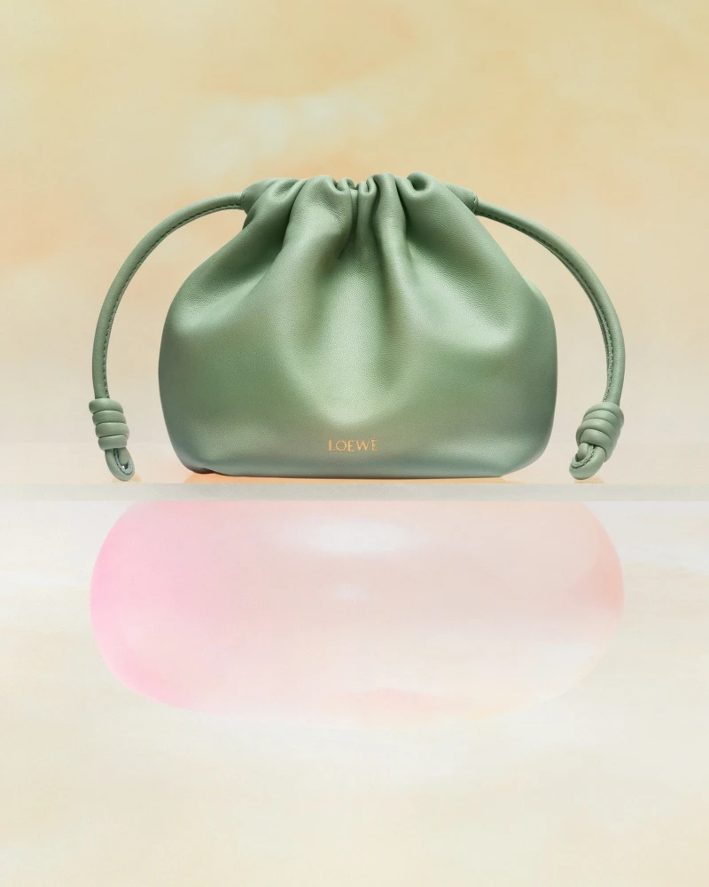 在1970年代推出的Flamenco手拿包款,柔軟如雲朵般的包型,開口以繞結皮革抽繩開合收緊,是LOEWE的經典長賣包款之一,全新的Flamenco Purse,尺寸縮小,但同樣可背也可作為手拿包使用,可愛度更高了。