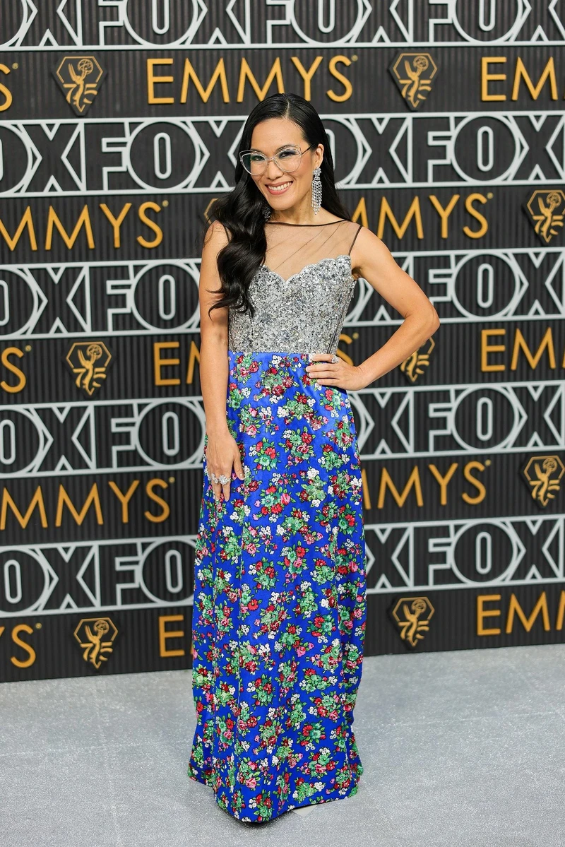 影集《怒嗆人生》女主角黃艾莉Ali Wong選穿Louis Vuitton的訂製禮服出席艾美獎,銀色亮片拼接花卉刺繡,在眾星之間顯得特別亮眼。