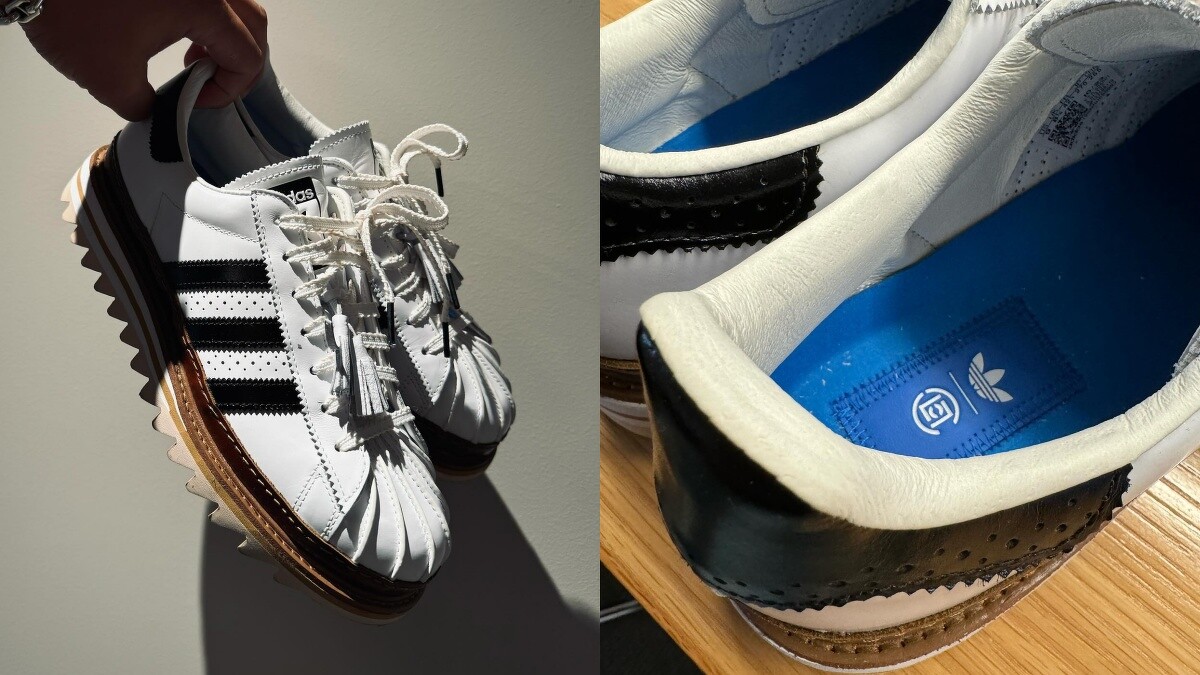 CLOT Superstar by Edison Chen融入了經典正裝的設計精隨,具有精緻的細節和輪廓,經典的貝殼鞋頭經過重新構思,以皮革手工縫製出細緻褶皺,獨特的鋸齒狀底部輪廓和精緻的皮革鞋邊等細節元素共同貫穿整個中底設計。此外,白色與黑色所呈現的對比線縫、和標誌性細節都體現了許多設計巧思。