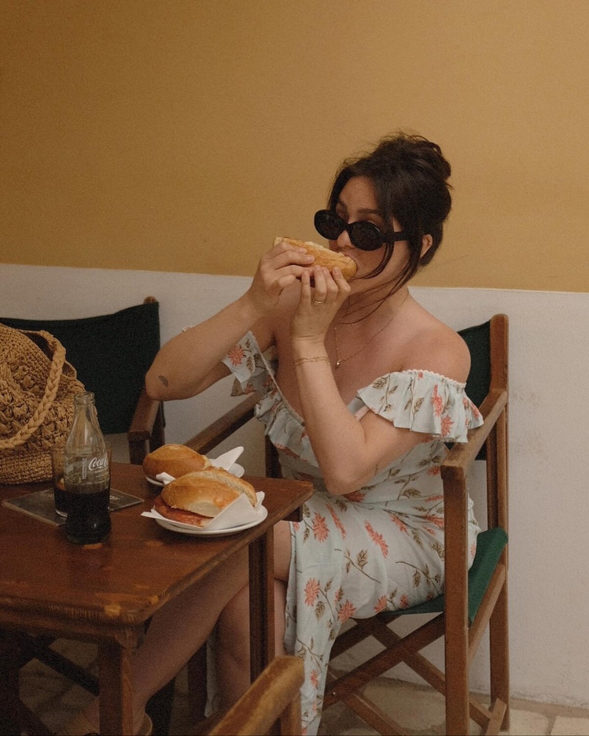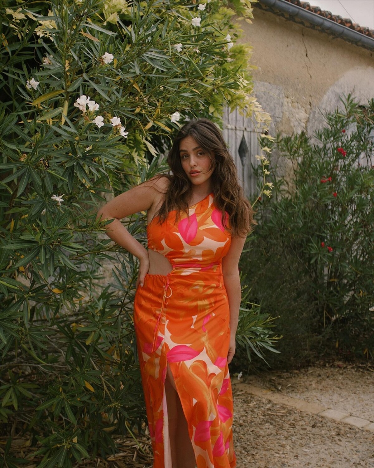 當然,一件式的洋裝絕對是最不需要花心思就能好看的穿著搭配,也是Sarah Babineau很常見的穿搭選擇,不過同樣要遵循露出肌膚的方式穿著,才不會有一種整個人被大件衣服包住的感覺!