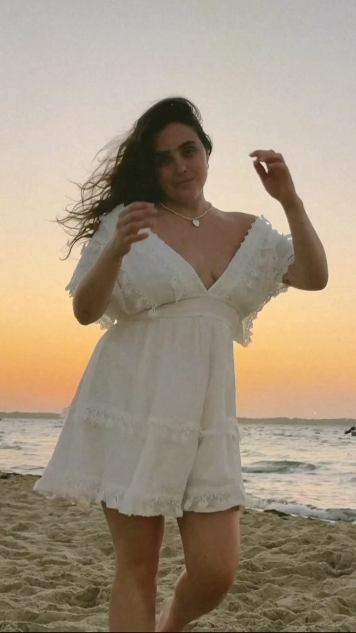 因為深色的穿搭單品給大家顯瘦遮肉的印象,所以很多有點肉肉的女生可能偏愛選擇暗色系的服裝穿上身,但這樣可能會造成視覺上的厚重感,而Sarah Babineau選擇的穿搭色系大多都是明亮的顏色為主,這樣不僅直接會有輕盈感,也會讓視覺的重點不著重在人的身形上面。